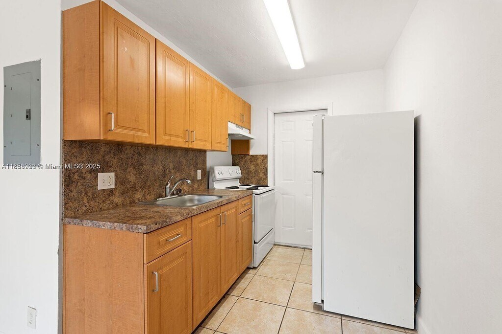 Prime Victoria Park Rental Opportunity! Charming 3-bedrooms, 2-bathrooms unit available in a quiet, well-maintained neighborhood. This freshly painted residence features tile flooring throughout, window A/C units for personalized comfort, and ceiling fans in both bedrooms and the living area. The updated kitchen offers modern cabinetry along with essential appliances, including a refrigerator and stove. The bathroom is bright and functional with a tiled shower. Multiple windows provide abundant natural light. Situated in a building with a distinctive yellow exterior, landscaped lawn, and a fenced outdoor area—ideal for relaxing and enjoying the surroundings.