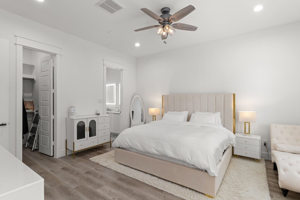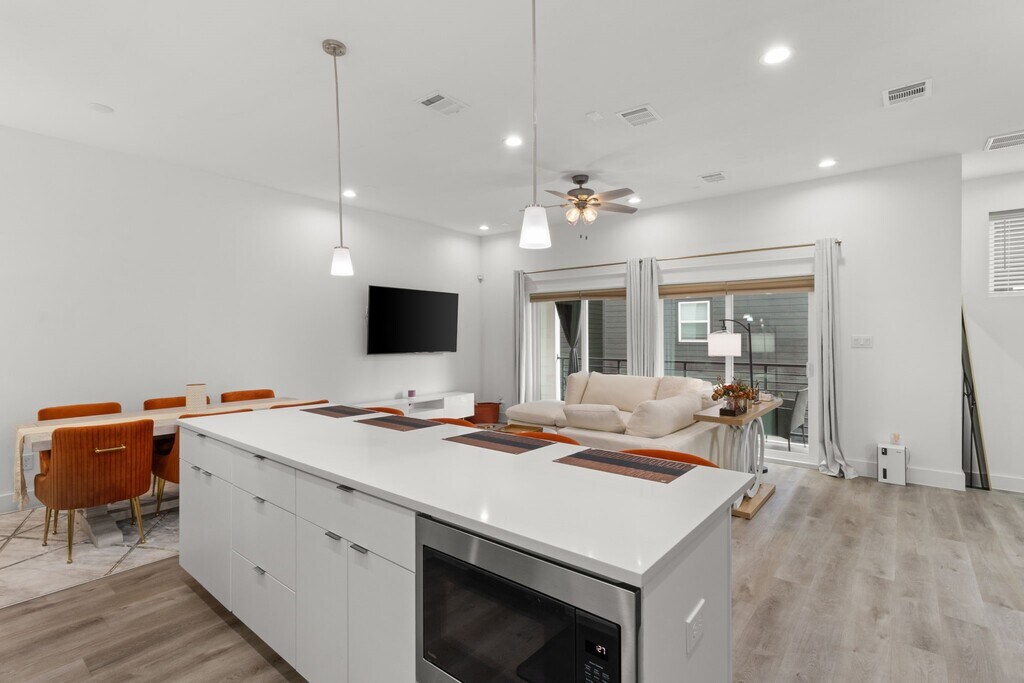 Modern 3-bedroom,3.5-bath residence in the heart of Houston offering sleek design and functional living. The main level highlights a gourmet kitchen with quartz countertops,custom backsplash,stainless steel appliances,and an oversized island that flows seamlessly into the dining and living areas. High ceilings,recessed lighting,and wide-plank flooring enhance the open-concept layout. The primary suite is a true retreat with generous space,large windows,and a spa-inspired bath featuring a freestanding soaking tub,walk-in shower,and dual vanities. Additional bedrooms each feature their own full baths with marble-look tile,illuminated mirrors,and modern finishes. Outdoor living includes a private balcony plus a rooftop terrace with skyline views — perfect for entertaining or relaxing. A private parking spot adds convenience to city living. With quick access to Downtown,EaDo,and major freeways,this property blends style,comfort,and accessibility in a prime location. MLS# 20796272