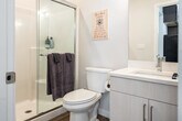 Welcome to Alberta Abode, your modern and spacious home in the walkable Alberta Arts District in Northeast Portland. This apartment features a fully equipped kitchen, a work-from-home desk and chair, a private washer and dryer, and a smart TV with a 65-inch screen. Enjoy the convenience of being just a 5-minute walk from coffee shops, restaurants, boutiques, and parks, with fast and seamless Wi-Fi, central heating and air, and free parking. Featuring high ceilings, two bedrooms, a large fully stocked kitchen, a full-sized washer and dryer, office space, and abundant natural light, this spacious and comfortable home is ideal for those who want to feel at home during their longer stay in Portland. The kitchen includes an electric stove, oven, microwave, toaster, air fryer, full-sized fridge and freezer, water filter, coffee pot, espresso machine, and electric tea kettle, along with complete sets of silverware, dishes, cups, mugs, pots, and pans. The apartment is pet-friendly and offers free parking. However, pets are not allowed on the furniture to prevent smells, stains, and hair that are hard to remove. Located just half a block from the vibrant Alberta Street, you can easily explore some of Portland’s best coffee shops, must-try restaurants, craft breweries, unique food carts, and Salt & Straw for a delicious ice cream cone. A 10-minute drive will take you to downtown Portland and the Pearl District, while a 15-minute drive will lead you to local hiking trails like Forest Park and Mount Tabor. The apartment is one block from the main bus line, making it easy to get around. The apartment is non-smoking, and any evidence of smoking inside will result in a $500 fee for air remediation. Quiet hours are between 9:00 PM and 8:00 AM to respect the neighbors. Unauthorized late checkouts that delay the cleaning company will incur a $100 fee. This is a community-focused environment, so please treat the home with respect and keep it clean before you leave. Broken, damaged, stained, or missing items will result in additional charges. The apartment includes a dedicated workspace with a desk and chair, perfect for those working remotely. Fast and seamless Wi-Fi ensures you stay connected. [SI]