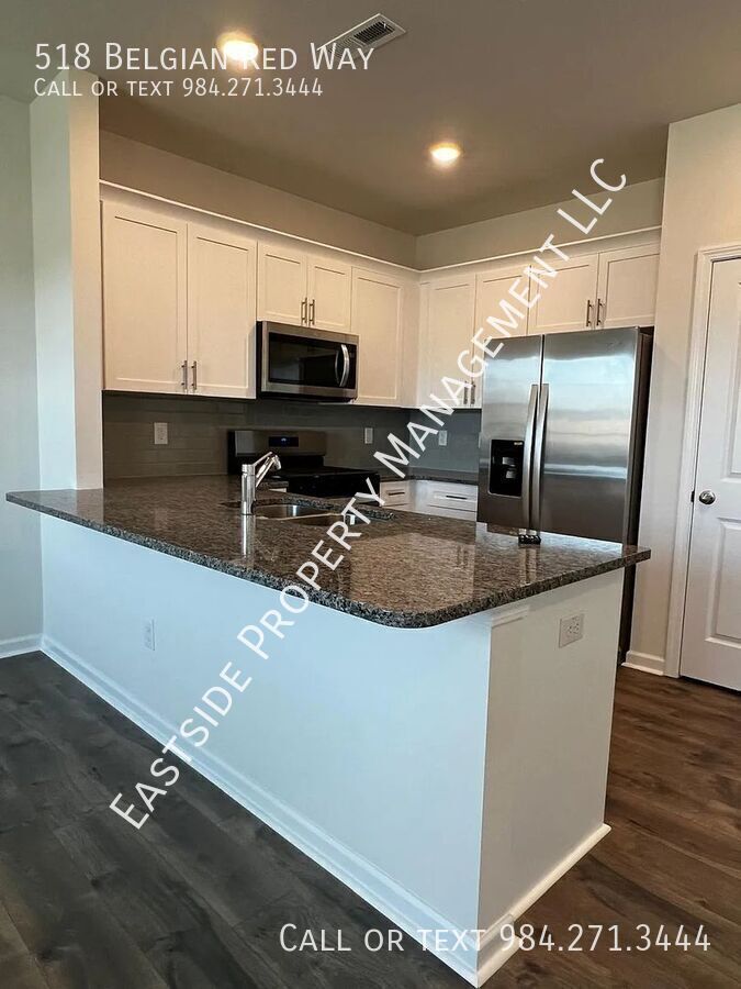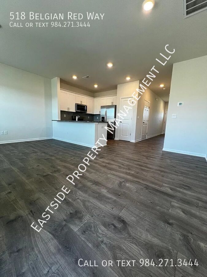 This townhome offers a 3 bedroom/2.5 bath and a single car garage. The house offers you an open floor plan with foyer flowing into beautiful kitchen, a cozy living room with dining, a half bath on the main level and opens to a nice backyard. The kitchen is beautiful with white cabinets, quartz countertops and subway tile backsplash and a pantry. Beautiful LVP floors on the main level. The second floor offers primary suite with a walk-in closet and master shower with a walk-in shower and double vanity. The other two bedrooms are of good size with the entire house so ventilated. Washer/Dryer and Refrigerator are INCLUDED. The community will offer a variety of future amenities, including a pool, an open-air covered cabana with a fireplace, playgrounds, a pavilion, a dog park, open spaces, a multi-use playfield, pollinator parks, a hammock park, and a paved public greenway connecting to the towns greenway trail system. A MUST SEE!! Utilities Not Included In Rent