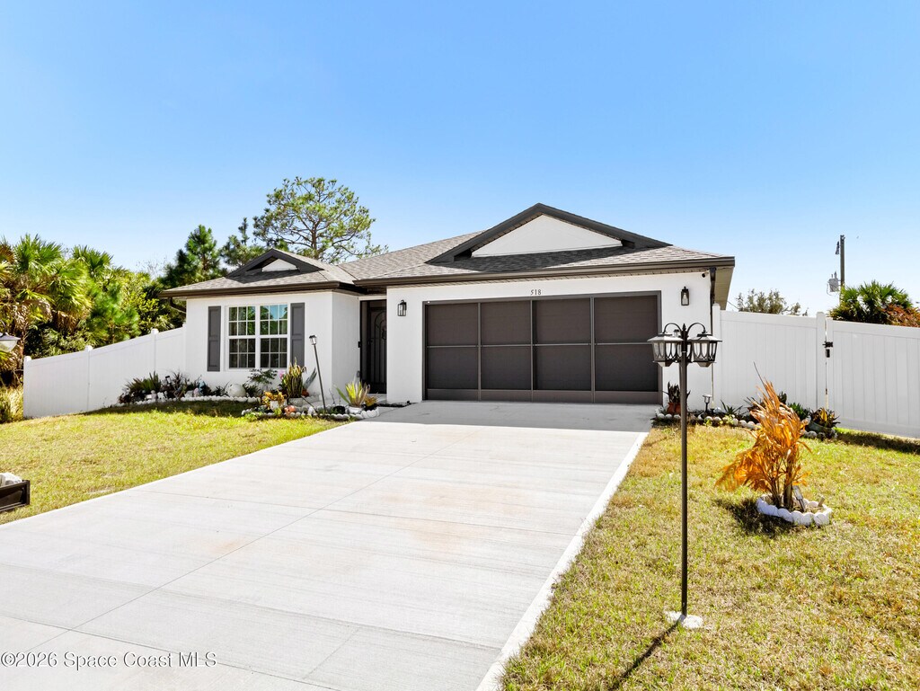 Welcome to this beautifully maintained 3-bedroom,2-bath home offering 1,535 square feet of comfortable living space. Enjoy peaceful mornings in the screened front entry and unwind in the screened back patio -- perfect for year-round Florida living. The garage is equipped with a privacy screen for added functionality and airflow. A fully fenced yard provides privacy and space to relax or entertain. This home offers both comfort and convenience -- ready for its next tenant! MLS # 1070588