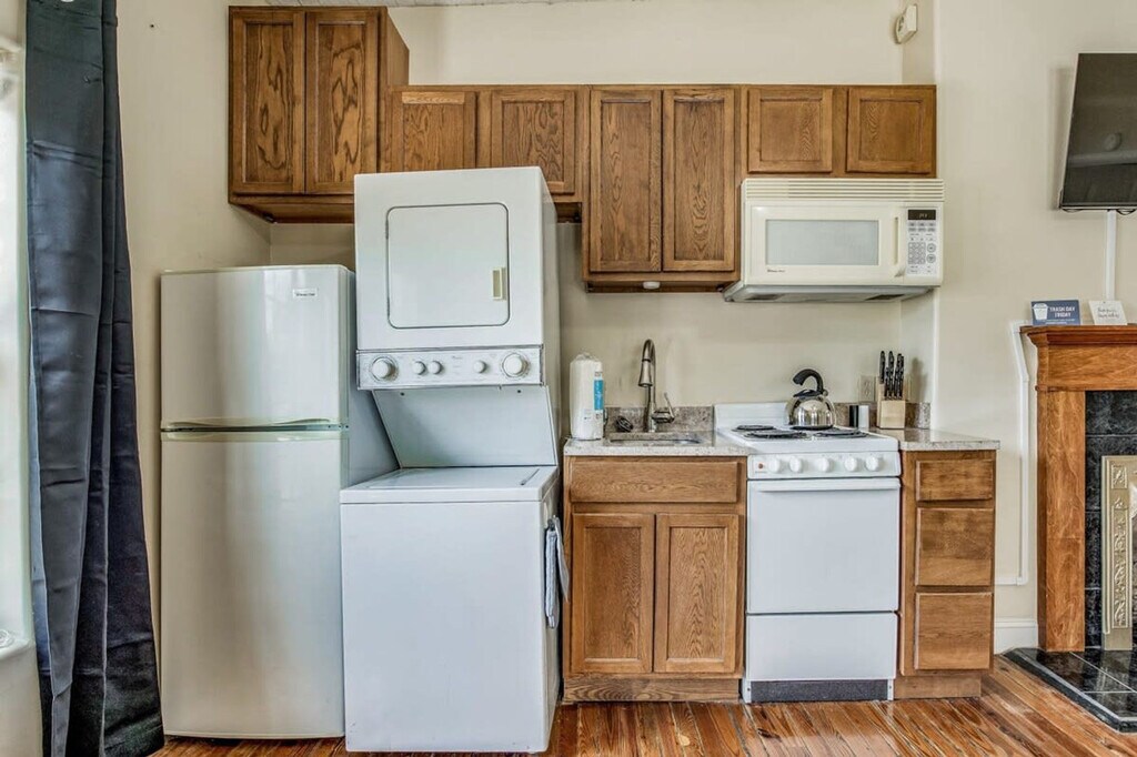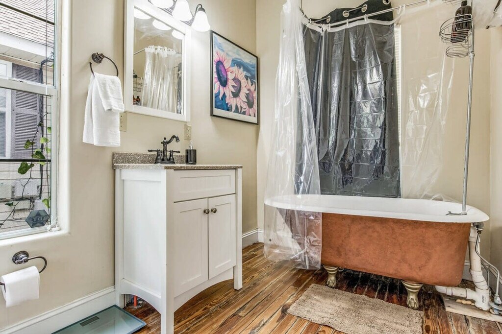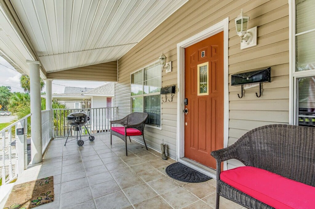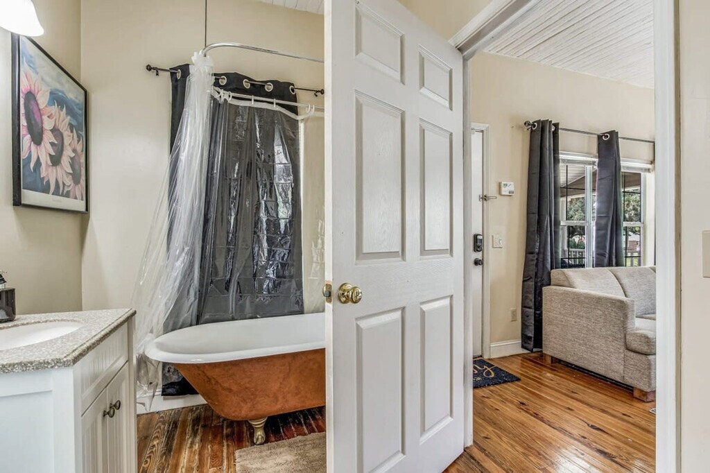 Sweet on Strong Street - Unit B is centrally located with easy access to all of Pensacola. This 1-bedroom, 1-bathroom property is less than a mile from downtown and a short drive to the airport and Naval Air Station, making it the ideal spot for exploring the city. Guests will enter through the door located on the front porch and be welcomed into an open concept living room and kitchen. The apartment features a full kitchen, a queen sleeper sofa, and a large Smart TV. The kitchen is equipped with everything needed to make dining-in a breeze. Just off the kitchen, the bathroom boasts a beautiful clawfoot tub, and the generously sized bedroom comes fitted with a very comfortable queen-size bed, perfect for resting at the end of the day. The front porch is a great place to start your day or hang out while you grill. Pets are welcome with a non-refundable pet fee. Pets must be crated when left unattended in the home and are not allowed on furniture or beds. All waste must be cleaned up from the yard. If there is evidence of pet hair on the furniture, excess hair in the home, stains, or waste found in the yard or home, you will be charged the cost to clean this. Conveniently located in a residential neighborhood, this property is less than 1 mile from downtown, 5 miles from Pensacola International Airport, and 7 miles from Pensacola Naval Air Station. Uber, Lyft, and other taxi services are available, but driving is encouraged. This is a duplex, and the back side of the house is also available to rent. There is a door that separates the two spaces in the bedroom that remains locked at all times unless both units are booked. We offer contact-free check-in via a digital door code, and we are only a phone call away if needed during your stay. Quiet hours are between 10 PM and 7 AM. If quiet hours are violated and neighbors are disturbed, the reservation will be canceled, and you will be required to leave the property immediately without eligibility for refunds. Smoking is prohibited, and any signs of smoking will incur an automatic $500 damage charge. Parties are prohibited, and other events are permitted only with prior approval. You will be responsible for any damage to the home or its furnishings during your stay. There is a $100 charge for third-party trash removal if an excessive amount of trash is left at the property. [SI]