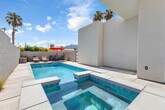 Discover this 4-bedroom home exuding modern sophistication. Constructed in 2018,this property boasts modern efficiency,natural gas connectivity,IID power,and close proximity to Old Town La Quinta. The open floor plan seamlessly blends indoor and outdoor living,highlighting a tiled fireplace,subway tile backsplash,stainless steel appliances,8-foot doors,and 12-foot ceilings. The kitchen,complete with a quartz waterfall island,is a dream for any culinary enthusiast. The master suite features a slider leading to the spa,perfect for enjoying the starlit nights. The ensuite bathroom offers dual vanity sinks with quartz countertops and a walk-in shower with custom tile. Outside,a spacious pool and ample lounging area beckon for relaxation,while the covered patio provides a serene retreat after a day of desert activities such as golf,tennis,hiking,dining,and shopping.