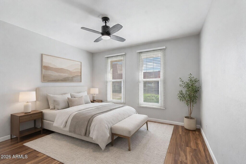 Nolan NuzumAvailable April 1! Effortless single-level living in the heart of Old Town Scottsdale. This beautifully updated 2-bedroom, 2-bath split floorplan townhome features hardwood flooring throughout and elegant French doors, all just steps from Chaparral Park.The kitchen is crisp and modern with white cabinetry, quartz countertops, stainless steel appliances, upgraded lighting, and RO water filtration. The expansive owner's suite offers a brand-new spa-inspired bath with a walk-in rain shower and TWO walk-in closets. The second bedroom is well-sized with a fully remodeled guest bath; ideal for guests, a roommate, or a refined home office.Enjoy a large private covered patio, two covered carport spaces, and an additional storage unit.