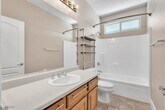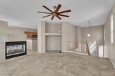 Welcome to your new oasis in Las Vegas! This charming 2-Bedroom + 1 versatile Den for your entertainment needs or office area, and 2 1/2 bathroom house is perfect for those seeking comfort, relaxation and convenience. Step inside to a fully equipped kitchen with a breakfast bar, sleek granite countertops, and top-of-the-line stainless steel appliances. The upstairs primary bedroom is a retreat itself with a custom walk-in close including the ensuite bathroom with dual sinks, a shower, and a Roman-style bathtub for a touch of luxury. No carpet anywhere! Travertine tile and modern hardwood laminate throughout the house. Unwind after a long day under the covered patio or relax in the long balcony to enjoy the beautiful mountain view. Located in the vibrant Southwest, within a 2-5 min. drive you have EOS, Albertsons, Urgent Care, Dog Grooming, Numerous NEW restaurants, Target, Silverton Casino...The list goes on!! Don't miss out on this fantastic opportunity before it's gone!
