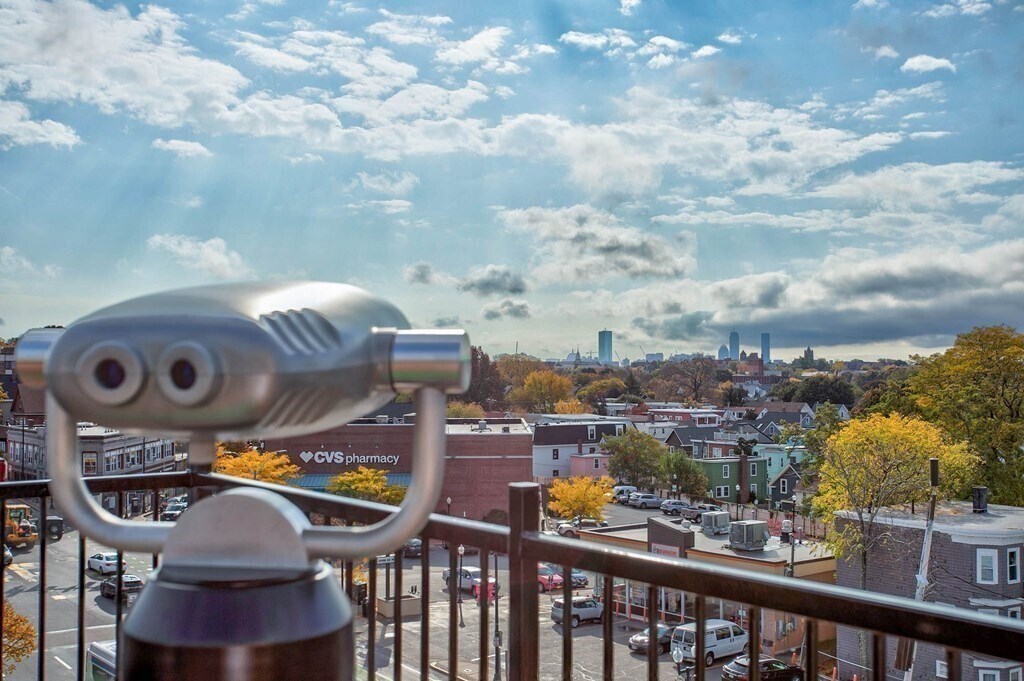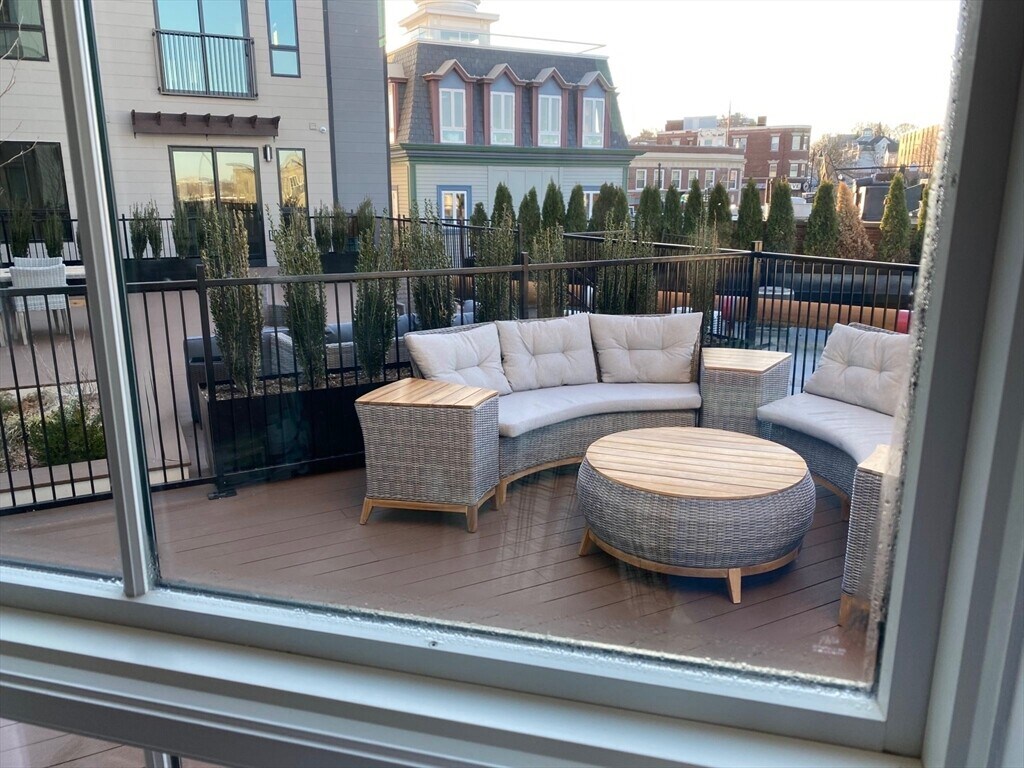519 Broadway 201,Somerville,MA - a spacious corner one-bedroom,one-bath unit with a private patio. A luxury residential building in Somerville featuring modern design and top-tier amenities. This corner unit boasts a gourmet kitchen with waterfall quartz countertops,GE Café stainless steel smart appliances,custom cabinetry,a built-in wine fridge,and hardwood floors throughout. It includes electronic shades,a Juliette balcony,and a large private outdoor patio—ideal for entertaining or relaxing. The open layout and floor-to-ceiling windows flood the space with natural light. Located opposite historic Trum Field,residents have access to five levels of upscale amenities,including a Skyview Observation Deck with panoramic views of the Boston skyline,a community kitchen,a fitness center,a coworking space,and a private screening room. Off-street parking and storage are available for an extra fee. MLS# 73453617