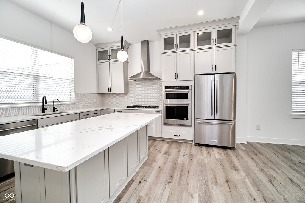 4-story luxury townhome located in the high-end area of downtown Indianapolis! This end unit has 3 bedrooms,5 bathrooms and LVP flooring throughout. The garage,half bath and flex space are on the bottom level. Entering the second level,you walk into a large living room,dining room,luxury kitchen with butlers pantry and half bath. The third level has all three bedrooms and two full baths. Primary suite offers custom closet. Dual sinks and a large walk-in shower in the ensuite. Top level is a entertainers dream with a loft,wet bar,half bath and rooftop patio with stunning views of downtown. Located in the exclusive area near Massachusetts Avenue. No Pets allowed. Washer and dryer for $50/mo. HOA dues are $300/mo which includes lawn care and snow removal. Based on information submitted to the MLS GRID as of [see last changed date above]. All data is obtained from various sources and may not have been verified by broker or MLS GRID. Supplied Open House Information is subject to change without notice. All information should be independently reviewed and verified for accuracy. Properties may or may not be listed by the office/agent presenting the information. Some IDX listings have been excluded from this website. Prices displayed on all Sold listings are the Last Known Listing Price and may not be the actual selling price.