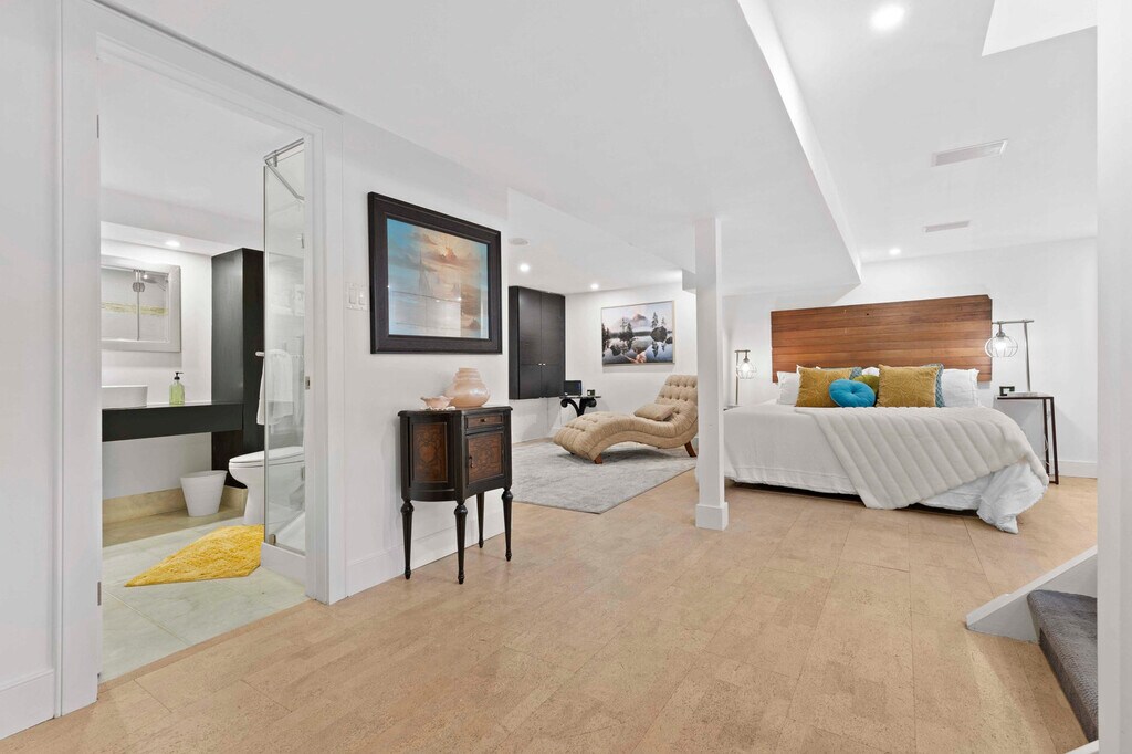 Feel at home in this dreamy, newly renovated house featuring a spacious backyard, inviting living space, and stunning kitchen. Enjoy the completely private lower-level unit with its tastefully decorated bedroom, living area, newly finished and fully equipped kitchen, and ensuite washer and dryer. The comfy king-size mattress ensures restful sleep every time, and our professional housekeeping and management team is just a click away to ensure your satisfaction. This spacious, bright, and beautiful unit boasts a comfortable king-size mattress and a 3-piece washroom. Equipped with a 55" Smart TV, the open-concept kitchen offers ample storage and a family dining room. Nestled in a quiet residential neighborhood, this home is conveniently located right off Queen Elizabeth Way. Just 4 minutes to Maple View Shopping Center, 3 minutes to Lake Ontario (15-minute walk), and close to numerous dining options including Earls’ Kitchen and Bar, Lava Pizza and Wings, Royal Cumin Burlington Indian and Hakka Bistro, Skyway Diner, Dairy Queen, and McDonald’s. The unit is located in the basement. The backyard is a shared space with the upper unit, and the driveway is also shared among residents. [SI]