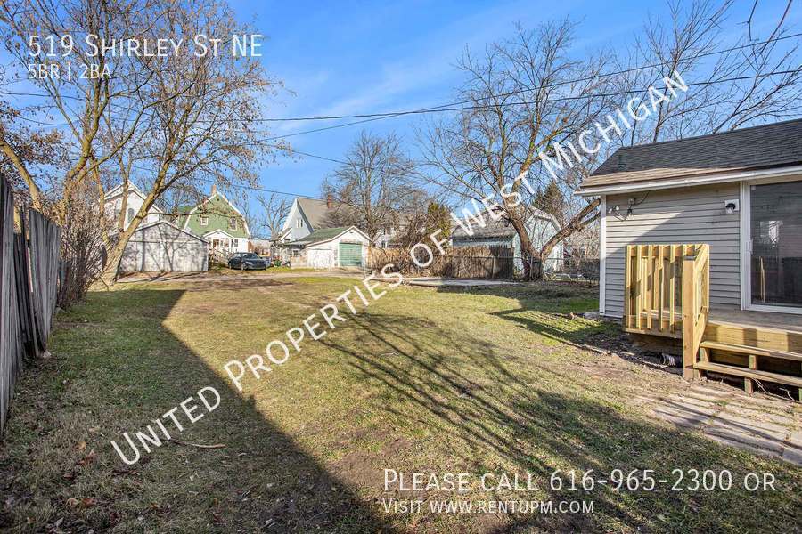 Welcome to 519 Shirley! This spacious 5 bed, 2 bath single-family home in the Highland Park neighborhood of Grand Rapids welcomes you with its charming front covered porch, perfect for relaxing and enjoying the neighborhood's character. With off-street parking, you'll have the convenience of a dedicated space for your vehicles. Inside, the home features convenient laundry facilities, making daily chores a breeze in this comfortable and inviting space. United Properties | | Schedule a showing: View application criteria: Submit an application: View pet policy: Once approved, you can secure your new home with a holding fee equal to one month’s rent, which reserves the property and is applied toward your security deposit. Based on a few items, the total deposit may be one month or one and a half times the rent; if higher, the remaining balance is due before move-in. United Properties of West Michigan has been helping residents find great homes since 2006 and is proud to be West Michigan’s largest property management company with a 4-star-plus Google rating. All residents enjoy the United Properties Resident Benefit Package, which includes: - Monthly credit reporting to the major credit bureaus - Rewards for on-time rent payments - Ongoing pest control protection This added value is $25/month, in addition to the listed rent. Learn more: We’re excited to help you find your next home and make your move-in experience as smooth as possible. Welcome home with United Properties of West Michigan! No A/C Porch Front Covered Tenant Pays Gas Water Heater Gas