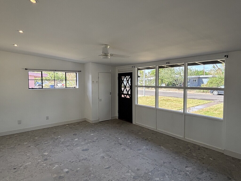 This updated mid-century home is located in the Campus Homes neighborhood, just blocks from ASU and downtown Tempe. It offers new terrazzo-style flooring throughout, modern cabinetry, and renovated bathrooms. The enclosed laundry room includes a washer and dryer. The private grassy backyard features flood irrigation. The neighborhood features mature trees and offers easy access to the Tempe Streetcar, Orbit, and light rail. Newly renovated Clark Park Community Center and pool is located down the street. Managed by a responsive, local landlord, this home is ideal for those seeking both charm and convenience. Non-smoking property. Renter is responsible for all utilities, except for flood irrigation. Last month's rent and security deposit due at signing. Small pets under 30 pounds permitted. Contact Joseph Harrington at to learn more.