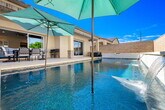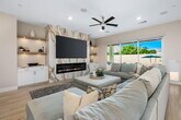 Experience luxury desert living in this stunning new construction lease,located in the exclusive gated community of Diamante by Crestwood in La Quinta. Offering five bedrooms and five bathrooms,including a private-entry casita with its own kitchenette and living room,this turnkey,fully furnished residence is designed for both sophistication and comfort. Every detail has been thoughtfully considered,from designer-selected hardware and lighting to upgraded tile,custom finishes,and premium furnishings,ensuring a truly move-in ready experience. The open-concept great room serves as the home's central gathering space,featuring an electric fireplace and a dramatic glass wall that slides open to connect effortlessly with the backyard. The chef's kitchen features a large expansive central island,perfect for entertaining and seating six,along with adjacent dining space that accommodates eight. A large wet bar with wine refrigerator and commercial-grade ice maker adds an additional touch of elegance. Ceiling fans throughout the home enhance comfort year-round. The primary suite is a serene retreat with direct patio access and a spa-inspired ensuite boasting a walk-in shower with three shower heads,dual vanities,and ample closet space. Guest bedrooms are generously proportioned and well-appointed,providing privacy and flexibility. Outdoors,a private courtyard entry sets the tone for the resort-caliber amenities beyond. The backyard features a heated pool and spa,fire pit,covered patio,and low-maintenance desert landscapingpool and landscape maintenance are included for worry-free enjoyment. A three-car garage offers room for a golf cart and all your toys. Located just moments from Old Town La Quinta,world-class golf,polo fields,the Indian Wells Tennis Garden,and an array of restaurants,resorts,and shopping,this home offers the perfect blend of privacy,luxury,and accessibility. With easy access to major freeways and the airport,it's a prime choice for seasonal or long-term stays in the Coachella Valley.