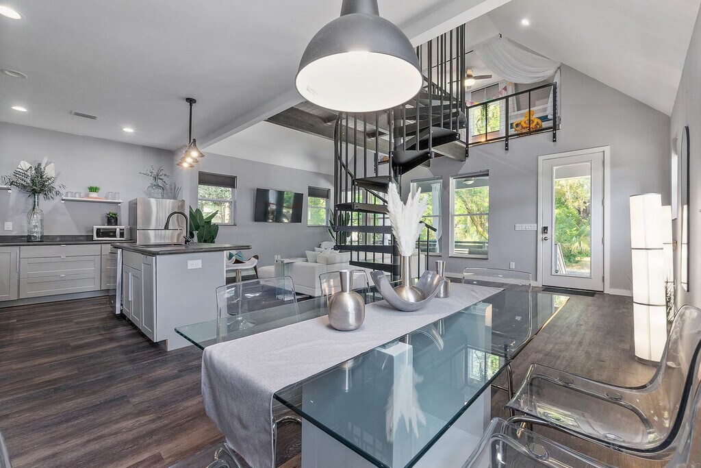 Welcome to The Secret Pool Cabana, a delightful retreat in the heart of the Oldest City. This charming home offers a solar-heated pool complete with a basketball hoop and swing chairs, perfect for relaxation and fun. The outdoor entertainment area features a dining space, corn hole, and a cozy conversation set on the front porch. Ideal for families, the property includes a fun kids' loft room and an outdoor activity shed in the backyard. The fenced-in yard is pet-friendly, and the home is just a short drive to downtown St. Augustine and a 10-minute drive to the beach. The space includes two twin beds with trundles, which may not be suitable for certain group configurations. The property allows one dog under 50 lbs, provided it is up to date on vaccinations, has flea treatment, and is potty trained. A $100 non-refundable pet fee applies, and guests are responsible for any damages caused by the pet. Additional charges will apply if dog feces is not properly disposed of, with a fee of $50 per pile. Getting around St. Augustine is convenient with your own car or a rental, as free parking is included with your stay. Rideshare apps like Uber and Lyft, as well as taxis, are readily available. Once in the city center, many shops, restaurants, art galleries, and attractions are within walking distance, making it easy to explore on foot. Quiet hours are enforced between 10 PM and 8 AM per St. Johns County ordinance. The minimum age to book is 25, and the primary guest must be present for the duration of the stay. The property is not suitable for parties or large group gatherings, and any guests outside of the reservation must be approved by the hosts prior to arrival. A security camera is installed at the front door, and tampering with it may result in reservation cancellation. No smoking or vaping is allowed on the property, and evidence of smoking will incur an additional cleaning fee. Late check-outs and early check-ins require prior approval, with a fee of $50 per hour for overstaying. Parents with young children should be aware that the home is not child-proofed.