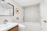 52 HERBERT STREET - APARTMENT 3A - WILLIAMSBURG / GREENPOINT BORDERVERY BRIGHT - MODERN CONDO FINISHES - W/D IN UNIT - CENTRAL A/C - HARDWOODSDiscover this beautifully designed and sun-filled one-bedroom apartment for rent on a quiet, tree-lined block at the Williamsburg-Greenpoint border. Residence 3A offers a gracious layout, abundant natural light, and refined finishes throughout-combining modern comfort with boutique condominium living.The apartment features wide-plank white oak hardwood floors and high-performance Pella windows that bring in excellent light while enhancing comfort and efficiency. The sleek open kitchen is outfitted with custom Italian Miton cabinetry, an integrated appliance package by Bosch and Fisher & Paykel, and stainless steel hardware-perfect for both everyday living and entertaining.The bathroom is spacious and stylish, finished with porcelain tile, a deep soaking tub, wall-hung toilet, and a vanity with ample storage. Additional highlights include an in-unit washer and dryer and a multi-zone central heating and cooling system for year-round comfort. Clean lines and contemporary finishes create a timeless, minimalist aesthetic that truly feels like home.52 Herbert Street is ideally located just moments from Graham and Bedford Avenues, with easy access to Williamsburg's top restaurants, cafés, bars, and shops-while remaining tucked away on a peaceful residential street.Applicant will be asked to provide the first month's rent and a one-month security deposit, both due at lease signing in the form of certified bank funds. A $20 non-refundable credit check fee applies per applicant.