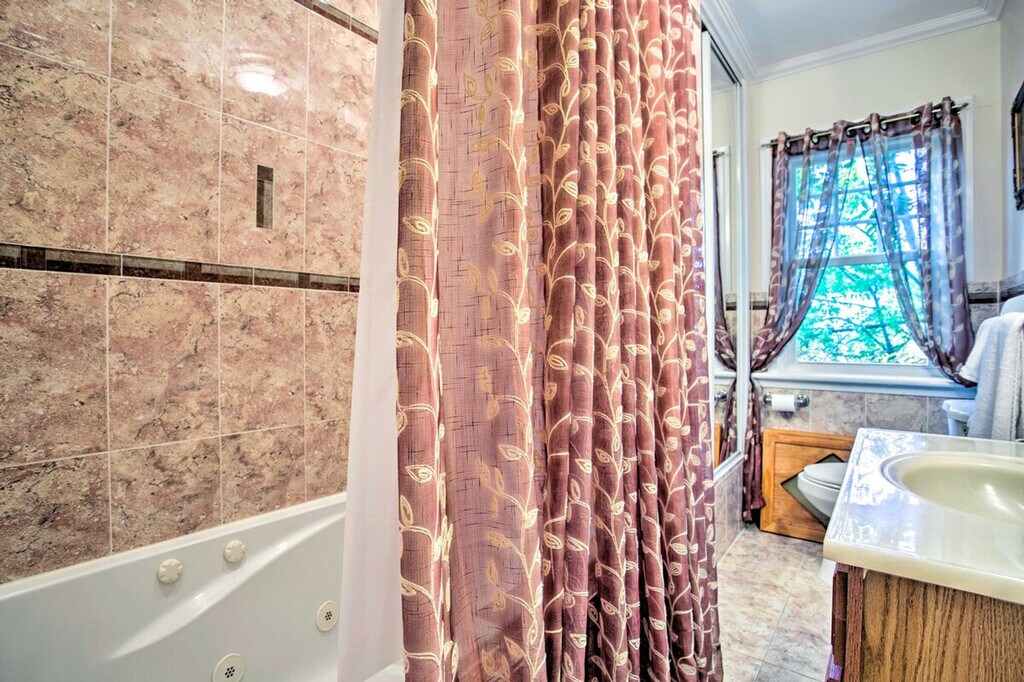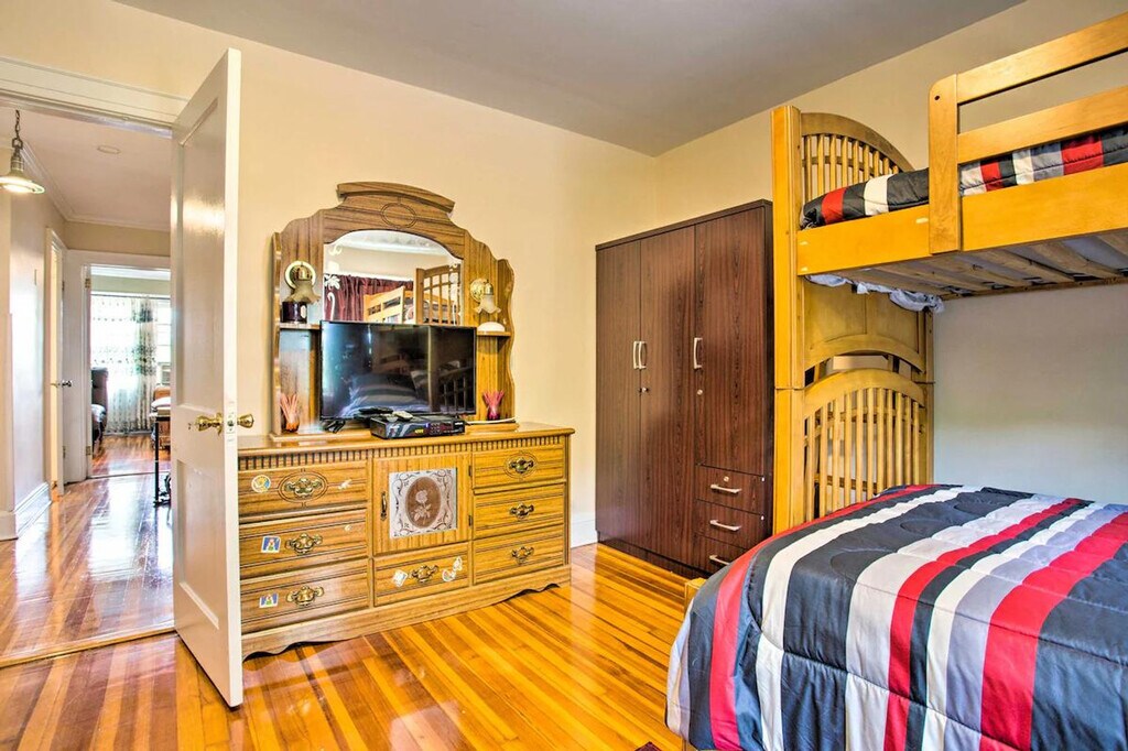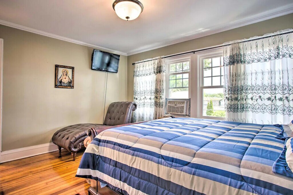 Feel at home in this 3-bedroom, 2-bath home in a quaint neighborhood of Yonkers. Keep in mind that stairs are required for access, which may be difficult for guests with limited mobility. This family-friendly retreat offers free Wi-Fi and features 4 smart TVs with cable, a DVD player, a fireplace, window AC units, and a jetted tub. The well-equipped kitchen includes a stove, oven, dishware and flatware, microwave, coffee maker, Crock-Pot, blender, spices, hot water pot, electric cookware, a rice cooker, and a refrigerator. Linens, towels, complimentary toiletries, a hair dryer, and an iron and board are provided. Perfectly located just outside of New York City, this home offers an ideal location to explore the city. Visit the Hudson River to kayak, fish, or take a river cruise. See downtown at the One World Observatory, then visit Ripley’s Believe It or Not for family-friendly fun. Stroll through Riverdale Park to enjoy natural wonders. The homeowner lives on-site, on the other side of the duplex, and may be present during your stay. No smoking, pets, events, parties, or large gatherings are allowed. This property features 4 exterior security cameras that record audio and video but should not infringe on your privacy. [SI]
