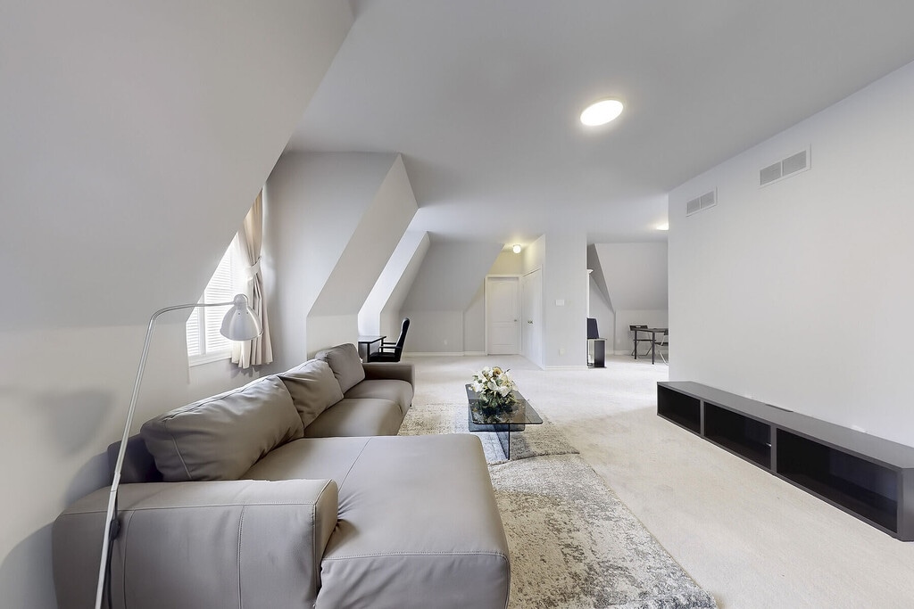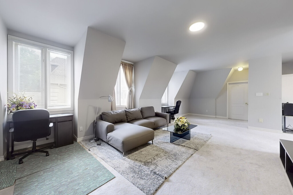 A beautifully gated, partially furnished coach house in Bridle Path is available for immediate move-in. The residence features neoclassical architecture with Parisian loft windows, simplified geometry and sleek aesthetic. The coach house is accessed via a private stairwell and two interior doors located inside the garage, which is accessible through either the main garage doors or a south-side entrance. A self-contained apartment on the upper level. An impressive open-concept floor plan boasts approximately 1,700 square feet of dedicated space. A wealth of windows creates an abundance of light throughout the day. Airy openness invites an oasis of tranquility from the verdant greenery surroundings. Both the four-piece bath and separate laundry enjoy treetop views. A generous family kitchen illuminates a bright breakfast area under the window and uplifts a pleasant start for the day. An expansive family room combines extensively with an enormous living room, offering multiple options for office or study nooks. One garage parking space and maximum two more driveway parking spots are included. Quietly situated on the east end of the majestic acres of immaculately manicured grounds, this residence features a seamless extension of interior living to restful outdoor space. Residents are welcomed to access the spectacular formal gardens and recreational facilities including an outdoor pool with a water slide, tennis court with sports storage, and children's playground. The amenities are accessible to tenants during their opening seasons. Renowned for its upscale connectivity and luxury lifestyle, this location provides perfect proximity to top schools and esteemed institutions. Granite Club, Crescent School, Crestwood, TFS, Havergal, Branksome Hall, UCC, BSS, York Mills CI and Sunnybrook Hospital are all within steps or a short drive. This coach house offers a unique residency in Bridle Path unlike any others.