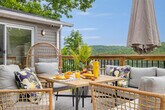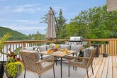 Welcome to Twin Lakes Retreat, a serene 4-bedroom cottage with breathtaking panoramic lake views. Thoughtfully designed for comfort, feel at home in this getaway. This home is fully equipped and features a spacious living room with a Smart TV, panoramic lake views, and direct access to the deck. Enjoy the fully functioning fireplace, ideal for cozy evenings, and a dining room with seating for 8, featuring stunning lake views and deck access. The fully equipped kitchen includes a dishwasher and all essential cooking and baking supplies. Complimentary coffee and tea are always provided. For entertainment, there is a foosball table, tons of board games, and a Smart TV for streaming your favorite shows and movies. The large deck has a seating area and BBQ grill, perfect for dining alfresco, and a 5-person hot tub to relax and unwind while soaking in the views. Enjoy the private sandy beach, large dock with lake toys including kayaks, paddleboards, and life jackets, and a navigable lake for adventures on the water. There is also an outdoor firepit with firewood provided for evenings under the stars and a picnic table by the lake for scenic meals. Enjoy the lake with complimentary kayaks and paddleboards. This property offers breathtaking views, modern amenities, and direct access to nature’s playground. This is a quiet, residential area. No outdoor music, yelling, or disruptive behavior is allowed at any time. Only registered guests (max 8 people, 4 vehicles) are permitted on the property and no outside visitors or parties are allowed. Violations of these rules, especially regarding noise or unauthorized guests, may result in a $150 fine and possible eviction without refund. No pets are allowed at this property. Quiet hours are from 9 PM to 8 AM. Violation of noise rules may result in a $150 fine and possible eviction without refund. Smoking is strictly prohibited inside or on the property. Includes a dedicated workspace for those who need to stay connected. Guests can access every space. The unfinished crawlspace/basement is kept locked but can be accessed to access the well pumps and electrical panel if needed. [SI]
