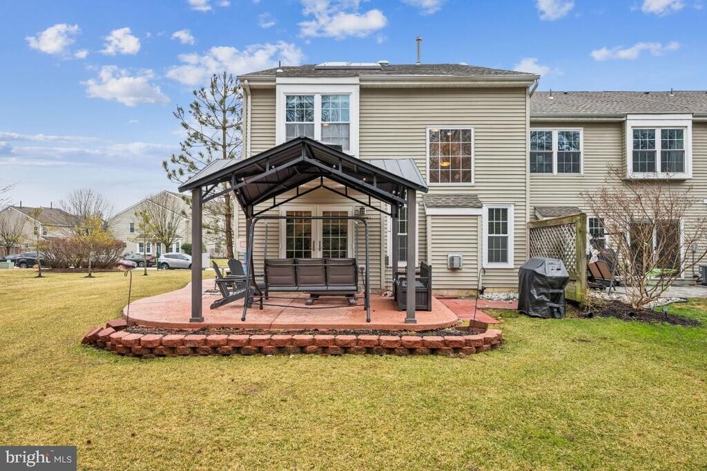 Modern comfort meets smart savings at 52 Stokes Road in the highly sought-after Stonegate community of Mount Laurel! Enjoy energy-efficient living with solar panels that most likely provide a zero-cost electric bill plus an annual utility credit, keeping utility costs impressively low year-round. This beautifully maintained 3-bedroom, 2.5-bath end-unit townhome offers over 2,200 sq. ft. of stylish, light-filled living space and backs to peaceful wooded views for unmatched privacy. Inside, you’ll find a welcoming living room, formal dining room, and a dramatic two-story family room with soaring windows and a stunning gas fireplace. The updated eat-in kitchen boasts granite countertops, stainless steel appliances, stone tile flooring, and a breakfast bar perfect for casual meals. The spacious Primary Suite features two walk-in closets and a luxurious Ensuite Bath with marble dual vanity, glass shower, and soaking tub. Two additional Bedrooms, an updated Hall Bath, a spacious linen closet and a convenient second-floor Laundry Room complete the upper level. Step outside to your private backyard retreat with a paver patio, new pergola and a three-seater patio swing overlooking tranquil wooded views—ideal for morning coffee or evening relaxation. Additional highlights: two-car garage that includes a second refrigerator, new HVAC with UV air sanitation, smart thermostat, Ring doorbell, keypad door entry, sprinkler system, and lighted paver walkway. Community amenities include a pool, tennis courts, and playground—all close to major highways, shopping, dining, and parks. Stylish, spacious, and energy-smart—this Stonegate gem is a must-see!