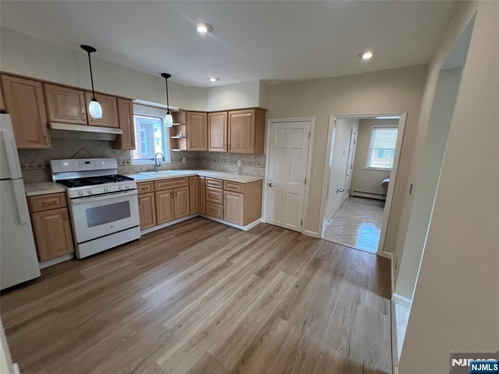 Walk into this newly renovated first floor unit with 2 Bedrooms, 1 Full bath, Kitchen and Living room on the first floor. You then have a hallway with access going down to the basement which is finished and includes a family room, another full bath and summer kitchen. The basement also has its own walkout entrance. Driveway for 2 cars is included as well as plenty of street parking. Backyard space for entertaining is also included. You are close to everything including public transportation.