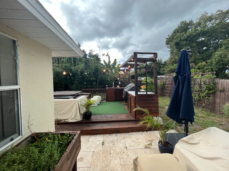 Property Id: 988172 Cozy and stylish fully furnished Merritt Island home with backyard oasis in highly sought neighborhood of Quail Run Estates. Completely fenced in backyard with bamboo privacy screen and updated kitchen. Enjoy outdoor cooking or relax in the hot tub while watching a rocket launch. This home is fully furnished, in a great neighborhood, and move in ready. Home is minutes away from shopping. The Orlando airport is 45 minutes away. Cocoa Beach is 15 minutes away. Kennedy Space Center is 15 minutes away. Utilities included: high speed internet, water, garbage and sewer, and front and backyard lawn care. Month to month rental with minimum of 6 months.