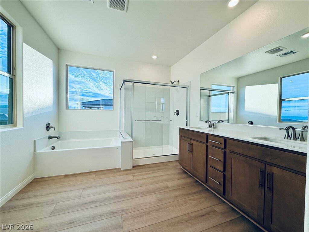 Stunning brand-new 5-bedroom, 4.5-bath home in sought-after Summerlin with modern finishes throughout. Features include quartz countertops, stainless steel appliances, Ceiling fans in each bedroom. Spacious upstairs loft offers a perfect second living area, while the primary suite opens to a large private balcony. Convenient downstairs guest bedroom with full bath. Enjoy gorgeous views of the LV Strip from one side of the home and beautiful mountains and Red Rock Canyon from the other! Prime location near the 215, shopping, dining! So much more!