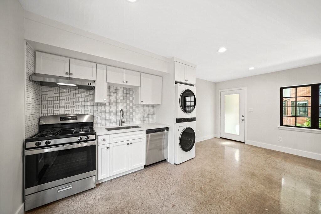 Nestled in the vibrant heart of Montrose lies this meticulously restored and renovated community. The 2024 top-to-bottom renovation means that you will be on of the first residents to live in these like-new spaces. New plumbing,HVAC (Central AC and heat),Appliances (Washer and dryer in unit),paint,windows,and refinished floors. Unit 1C boasts a spacious living area seamlessly open to the modern kitchen with huge built in pantry and brand new washer and dryer. The unit also offers a large bedroom with oversize window,and ample closet space,all complemented by the convenience of stylish refinished concrete floors. Dual access with separate front and back door. Fully gated with automatic driveway gate and covered assigned parking spot. Pets/Larger dogs are considered. See attachments for full features and breakdown of all available units. Video in Links MLS# 45400328