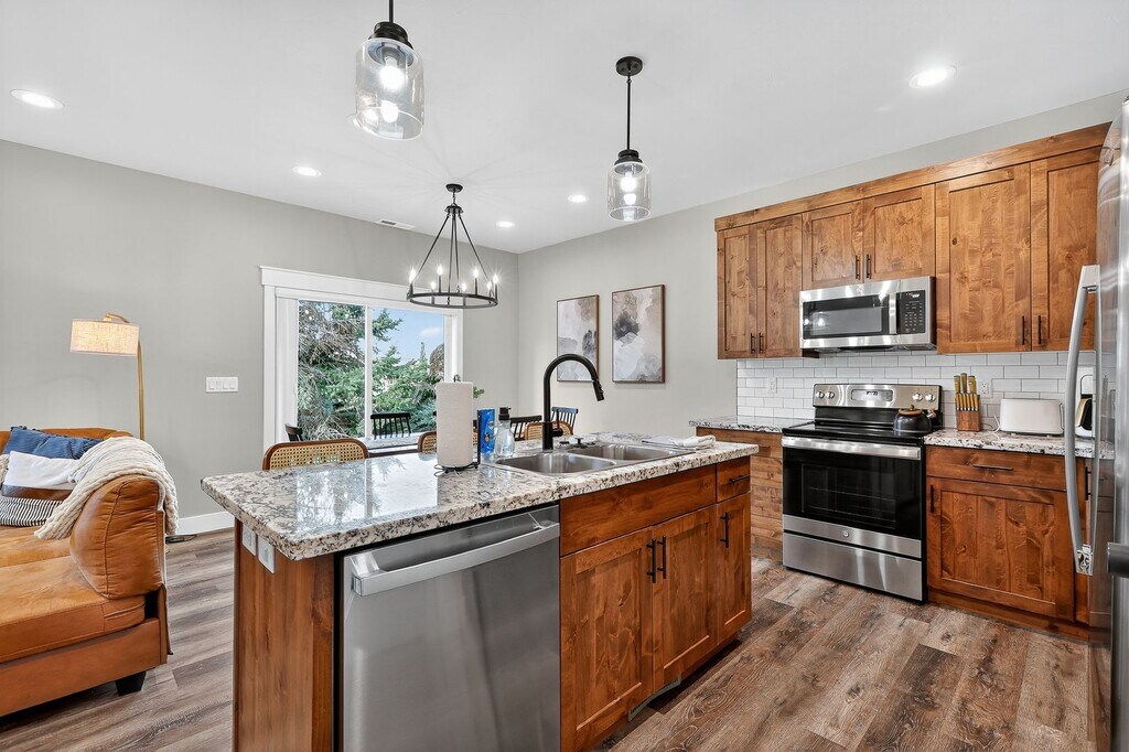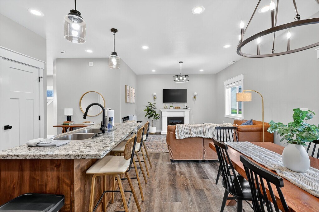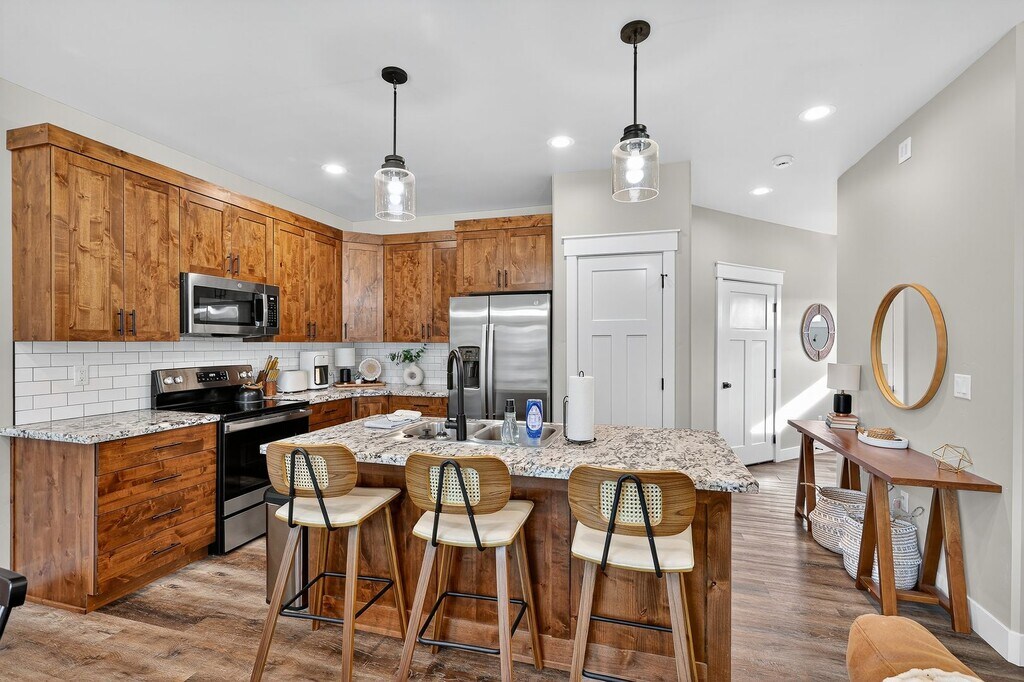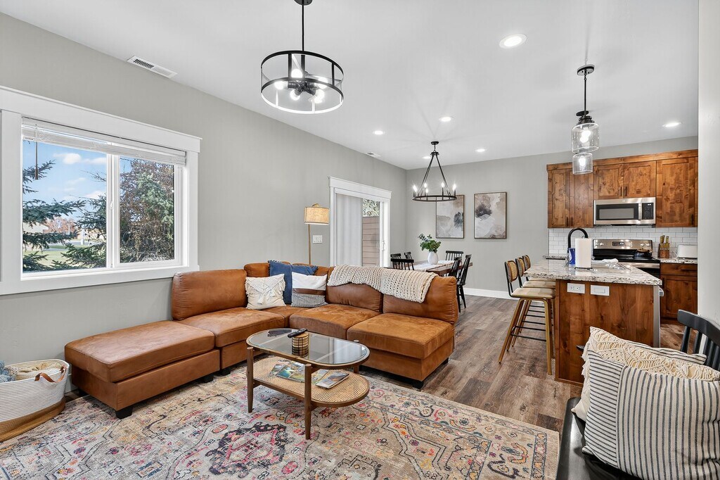 What you SEE in these pictures and video….is EXACTLY what you get with this rental….. YES furnished AS-IS! We can remove the items if you do not need or want them in the unit. This brand-new, beautifully designed 1,625-square-foot townhome tucked in the charming town of Ashton. Featuring 3 spacious bedrooms, 2.5 bathrooms, and a generous 2-car garage, this property is right at the foothills of the Centennial Mountains. You will find yourself with the ideal blend of breathtaking landscapes and is perfect for families, young professionals, or anyone seeking a low-maintenance lifestyle. Step inside to an open-concept living space filled with natural light, highlighting the high-end finishes throughout. The gourmet kitchen boasts stainless steel appliances, quartz countertops, and ample cabinet space, making it perfect for both daily living and entertaining. Upstairs, the primary suite offers a tranquil retreat with a walk-in closet and a luxurious en-suite bathroom featuring dual sinks and a sleek, tiled shower. Two additional bedrooms are perfect for family members, guests, or a home office, with a second full bathroom nearby. The convenient half bath on the main level adds an extra touch of functionality for guests. Outside, the private patio space offers room for relaxation or small gatherings. With energy-efficient systems, a two-car garage for storage or parking, and easy access to local shops, dining, and parks, this townhome is designed to meet all your needs. Don’t miss your chance to make this stunning, move-in-ready property your new home!