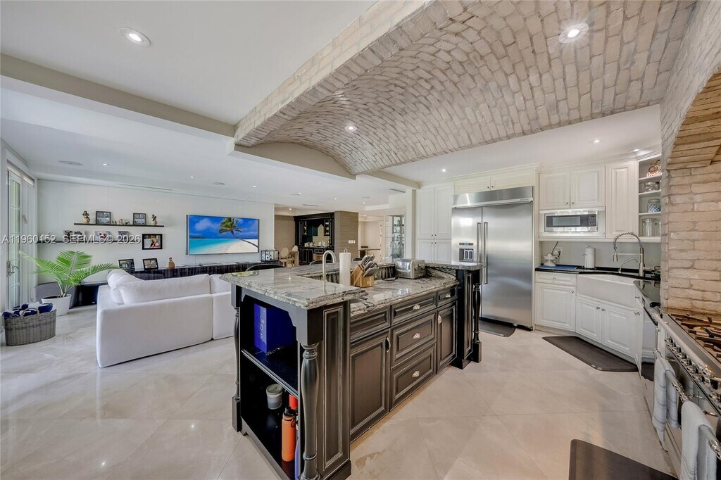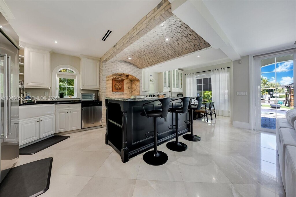 GOLDEN BEACH-EXCLUSIVE GATED COMMUNITY W/PRIVATE BEACH! Elegant waterfront living awaits in this stunning 4 bed + room that can be used as a gym, 4.5 baths chateau-style estate, ideally situated on a tranquil canal in prestigious N Parkway. Spanning 4,356 sf of refined living space, this beautifully furnished residence seamlessly blends timeless European architectural details with modern comforts. The grand facade opens to light-filled interiors featuring high ceilings, arched brick accents in the kitchen, and exquisite craftsmanship throughout. The gourmet kitchen is complete with a large center island, custom cabinetry, premium appliances, gas stove, and an adjacent breakfast area. Formal & casual living spaces flow effortlessly, offering picturesque views of the water and lush tropical landscaping. Upstairs & down, generously sized bedroom suites each with its own en-suite bath. Outdoors, enjoy S Florida living at its finest w/resort-style pool, expansive patio areas, & direct canal frontage-ideal for relaxing or entertaining. Located just moments from Golden Beach's private beach access & parks. Golden Beach amenities include tennis & pickleball courts, basketball courts, children's playground, dog park, and coming soon a gym/wellness center. MLS # A11960152