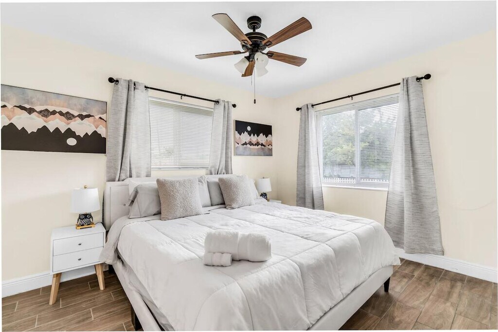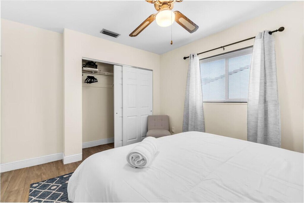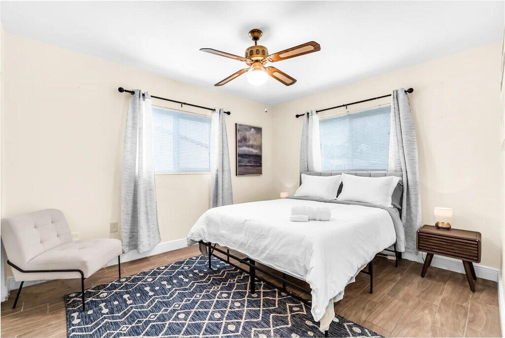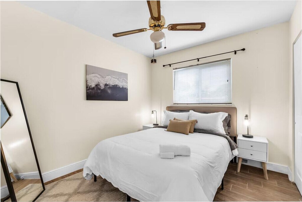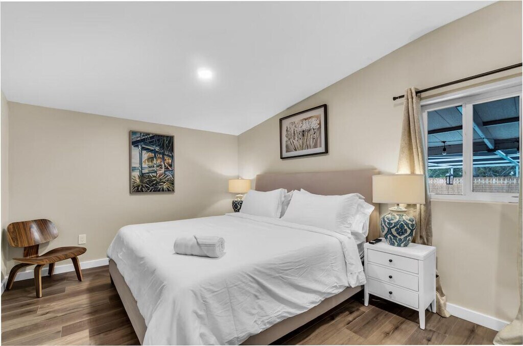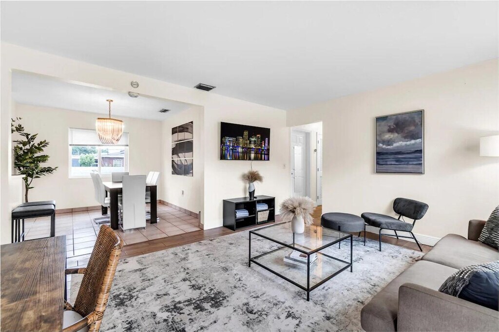Feel at home in this modern 4-bedroom, 3-bathroom Miami home, located just 20 minutes from Downtown and Miami Beach. This home is designed for comfort and convenience, perfect for families, groups, or business travelers. Two spacious king suites with en-suite baths and two cozy queen bedrooms ensure everyone has room to relax. The open living area features high-speed Wi-Fi, Smart TVs with Netflix, and a fully equipped kitchen for home-style meals. Step outside to your own outdoor oasis, complete with lounge chairs, a bar, and dining for six, ideal for sunny afternoons or evening gatherings. In-home laundry is available. Parking is available for two vehicles. This stylish home offers the best mix of relaxation and easy access to the city’s top attractions. Parties, events, or large gatherings are strictly prohibited. Violation will result in immediate cancellation of your reservation without refund and may include additional charges for damages. Smoking inside the property is not allowed; a $500 cleaning fee will be applied if evidence of smoking is found indoors. The property accommodates up to 8 guests only; exceeding this number will result in termination of the booking without refund. Quiet hours are from 9:00 PM – 7:00 AM; please respect neighbors and keep noise to a minimum. Personal mail and packages are not permitted at the property; please use nearby postal services or package holding facilities instead. Do not move furniture, remove items, or attach decorations to walls or ceilings. Report damages or maintenance issues immediately so they can be addressed quickly; unreported damages may result in additional charges. NoiseAware is installed to ensure comfort and neighborhood peace; it monitors noise levels (not conversations), and exceeding safe levels during quiet hours will trigger alerts. Children under 16 must be supervised by an adult in the pool area. Swim at your own risk; the pool is not supervised. No running or unsafe behavior is allowed around the pool. Only flush toilet paper; misuse leading to professional plumbing will result in a $350 service fee. For stays over 28 days, a mandatory mid-stay cleaning service ($250) will be scheduled to maintain cleanliness and comfort. Please respect our home by ensuring only verified guests are present and by maintaining a reasonable noise level, especially after dark.