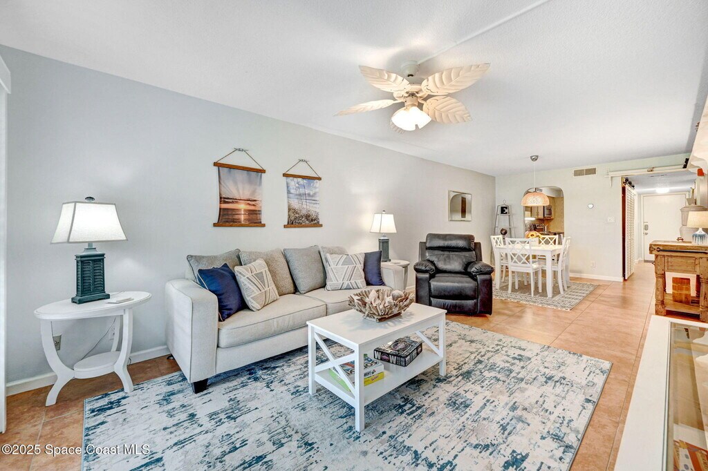 RENTED JAN 2026 THROUGH APRIL 2026 Welcome to your newly updated beachside home! This gorgeous first floor unit is completely furnished in coastal comfort along with all kitchen utensils,towels,bedding,and beach toys. View rocket launches from your private screened patio,swim in the oversized heated pool,enjoy a game of tennis or pickle ball,and take a stroll to the nearby beach. This worry free rental includes ALL utilities (electric,water,sewer,trash & internet). Automated hurricane shutters for added convenience and safety! Park in your assigned covered space,and plenty of additional guest parking available. Minimum 60 day Rental -- NO PETS.