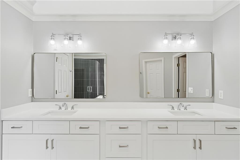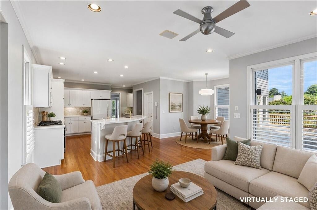 Four bedrooms,three and a half baths on a quiet cul-de-sac in Woodcliff -- a well-established HOA community in the heart of Sandy Springs,where neighbors know each other,yards are kept,and there is an active community. The main level is open and easy to live in. Hardwood floors,plantation shutters,and high ceilings set a clean baseline. The kitchen anchors the space with an island,breakfast nook,and a keeping room with fireplace that makes the layout feel both connected and comfortable. A separate living room and dining room give you room to spread out. Just off the garage,a dedicated laundry and workroom doubles as a proper drop zone. Upstairs,the primary suite is genuinely oversized -- sitting area,three closets including two walk-ins,and a renovated en-suite bath with new cabinetry and countertops,dual vanities,separate tub,and separate shower. Three additional bedrooms,each with walk-in closets,round out the upper level. One has its own en-suite bath; the other two share a connecting bath. A built-in book nook on the landing adds character and a quiet spot to settle in. The partially finished basement adds flexible square footage. You can use it as a den,home office,gym,or media room. Additional unfinished space with workshop space and ample storage beyond. Outside,a covered front porch welcomes you home. Out back,a deck and shaded patio below overlook a private,tree-lined backyard which creates a genuinely usable outdoor setup for entertaining or everyday enjoyment. Minutes to City Springs,Sandy Springs' civic and cultural hub,with restaurants,events,and retail right at the center of it all. Zoned for Heards Ferry Elementary,Ridgeview Charter Middle,and Riverwood International Charter High School. Easy access to premier private schools,GA 400,and I-285. MLS ID 7757733