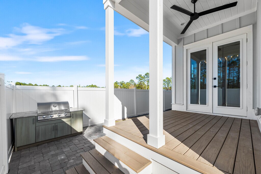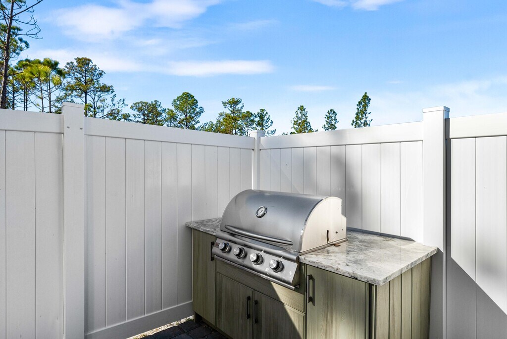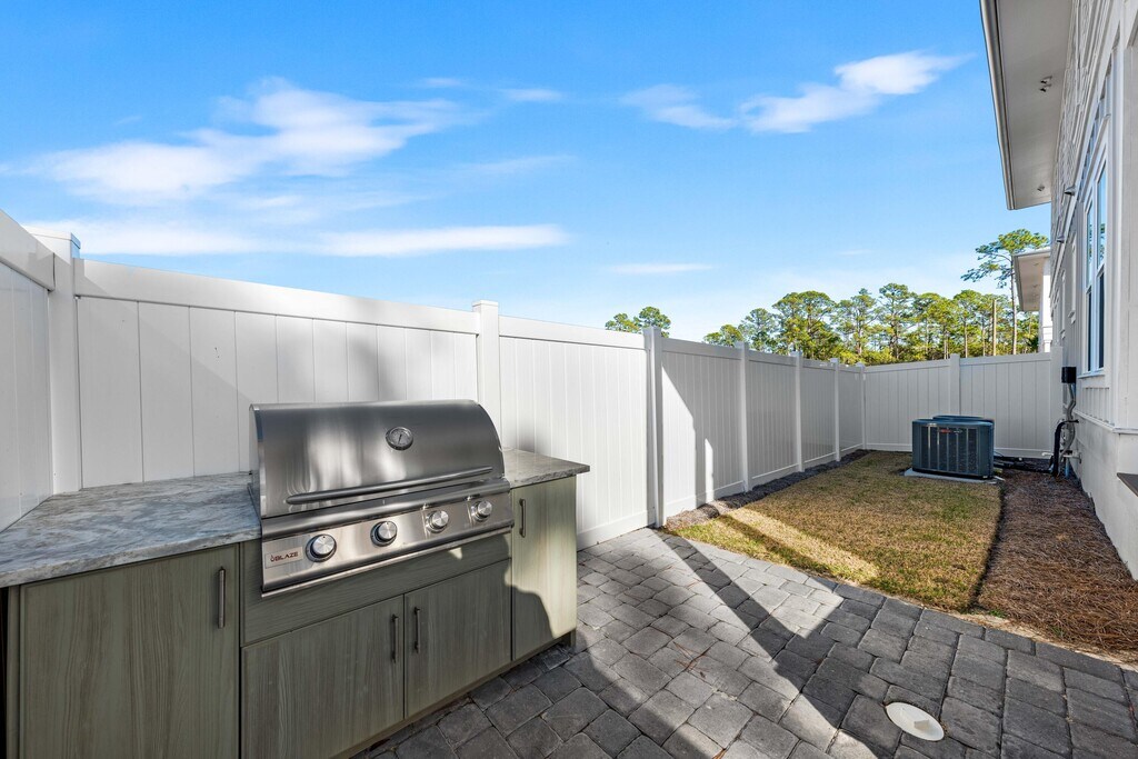 Welcome to Century 393, the newest and most exciting townhome development in Santa Rosa Beach, Florida. Perfectly positioned at 520 S Co Hwy 393, this exclusive community offers unparalleled access to 30A's best just a three-minute golf cart ride to Ed Walline Beach, Shunk Gulley, Papa Surf Burger Bar, and the lively Gulf Place town center. Unit #40A boasts 1,914 square feet of heated and cooled living space, with 2,412 square feet under roof. Designed for modern coastal living, this three-bedroom, four-and-a-half-bath townhome features a versatile bunk room, high-end finishes, an outdoor kitchen, and a fully fenced backyard with private hot tub making it an ideal personal retreat. The open-concept first floor seamlessly connects the living, dining, and kitchen areas,