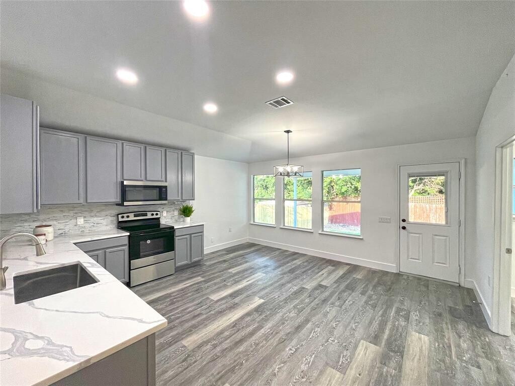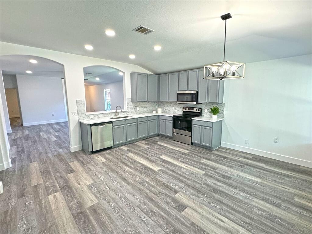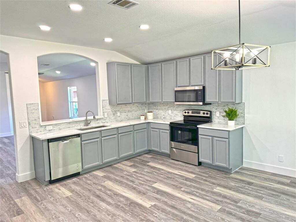 Fully renovated single-story home with new paint, flooring, appliances, countertops, faucets, etc. Must see to appreciate. Front and back covered patios. large backyard.