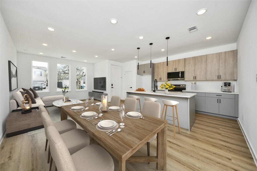 Welcome to this beautifully designed,newly constructed duplex offering two spacious units,each featuring 3 bedrooms and 2 full bathrooms with approximately 2,600 square feet of total living space. Designed with comfort,style,and functionality in mind,this property is ideal for owner-occupants,investors,or multi-generational living. Each unit boasts an open-concept layout with durable luxury vinyl plank flooring,recessed lighting,and abundant natural light. The modern kitchens are equipped with quartz countertops,large center islands with undermount sinks,sleek cabinetry,stainless steel appliances,and contemporary pendant lighting—perfect for both daily living and entertaining. The private primary suites include generous closet space and spa-inspired bathrooms with dual vanities and designer fixtures. Secondary bedrooms are well-sized and versatile. Conveniently located,this turnkey duplex offers exceptional value,flexibility,& long-term investment potential. MLS# 89425145