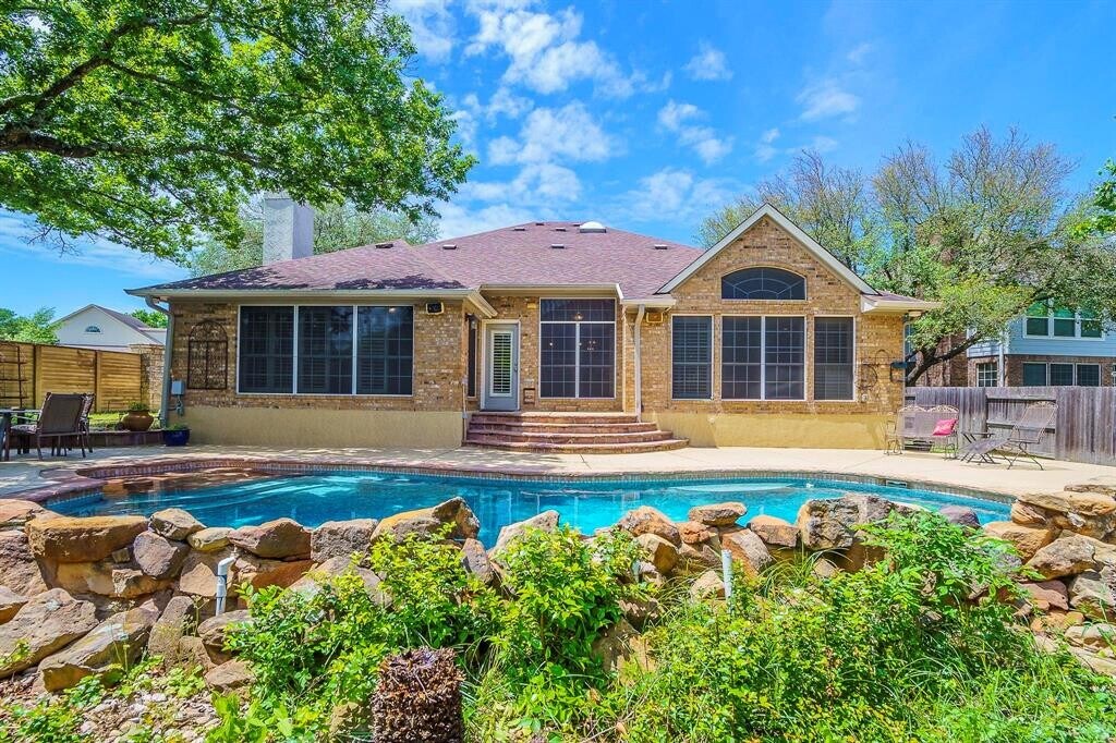 Your search satisfies here — 5201 Kite Tail Dr, Austin, TX. Explore the property and take the tour: ; A rare single-story pool home in Austin's prestigious River Place community — 3 bedrooms, 2 bathrooms, and 3,010 sq ft of thoughtful living on a beautifully landscaped 0.248-acre corner lot with mature trees. Every bedroom is on the main level — one of the few true single-floor layouts in River Place. The primary suite sits privately away from secondary bedrooms and features dual sinks, a jacuzzi tub, dual-head shower, and walk-in closet. Crown molding, high ceilings, and a wood-burning fireplace anchor the main living spaces. The gourmet kitchen is built for everyday living and entertaining — gas cooktop, double convection oven, built-in microwave, dishwasher, trash compactor, wine refrigerator, granite countertops, center island, breakfast bar, and large pantry. Opens directly to the family room and casual dining area, with a separate formal dining room for larger gatherings. Three distinct living areas plus a dedicated front office support remote work, homeschooling, or multigenerational living without compromise. An in-ground waterfall pool anchors a private backyard retreat, with automatic multi-zone irrigation and mature trees keeping maintenance low and curb appeal high. Zoned to Leander ISD — River Place Elementary is approximately one mile away, with Four Points Middle School and Vandegrift High School completing the K–12 pathway. Apple Campus is ~3.5 miles away, The Domain ~8 miles, and Downtown Austin ~12 miles, with Lake Austin, dining, grocery, and medical services all within minutes. Short-term lease options may be considered with a higher monthly rent. MLS ID 7887259