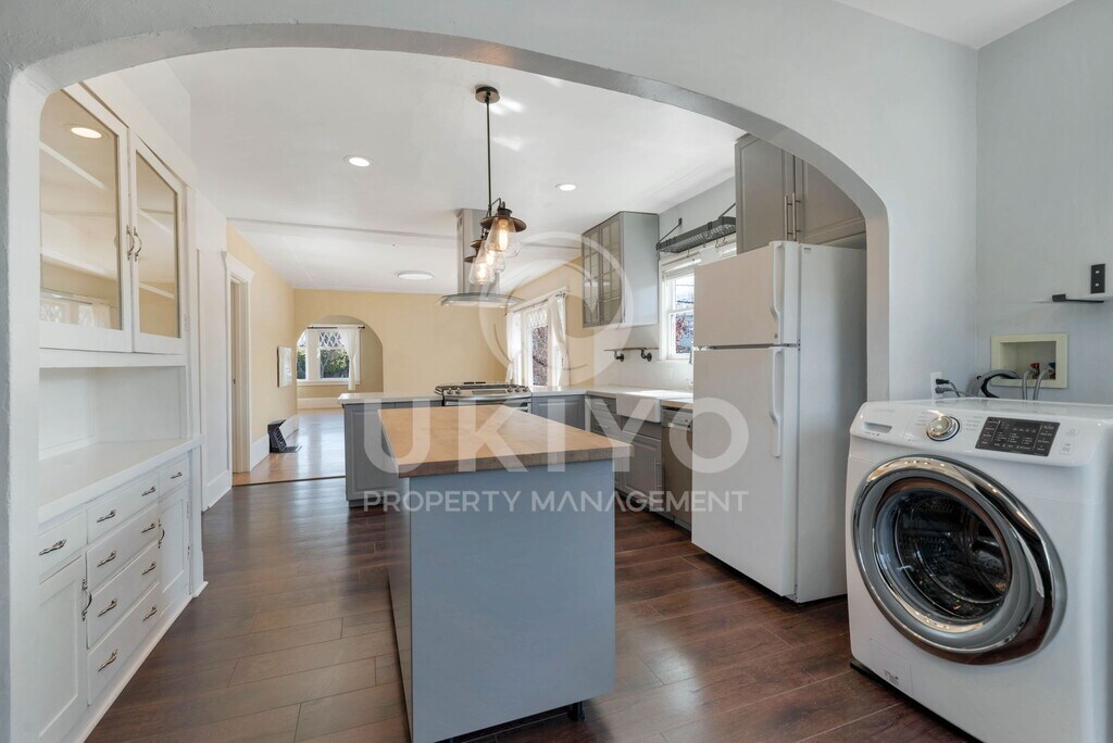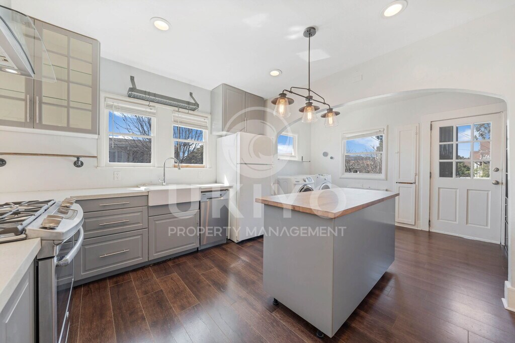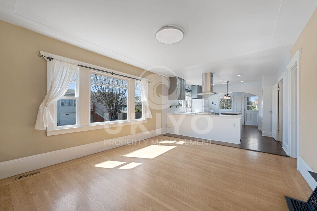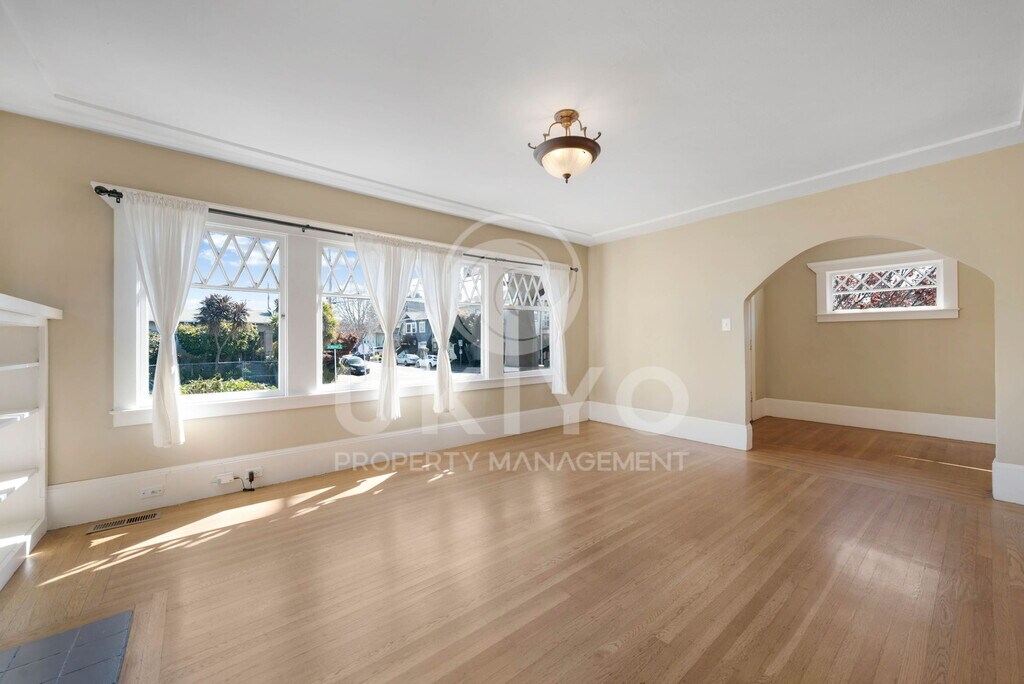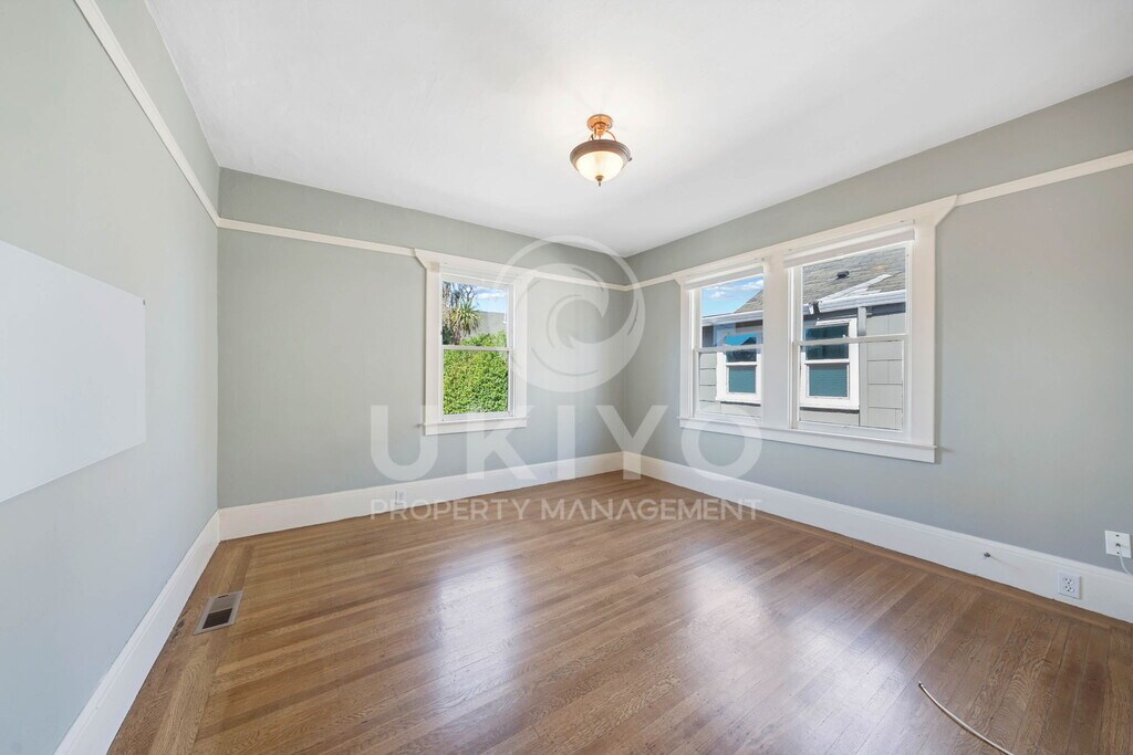 Discover this captivating 4-bedroom, 2-bathroom 1918 Craftsman-style bungalow, spanning 2310 sq ft and exuding a bright and sunny interior. The home is adorned with charming architectural details and boasts beautiful hardwood floors, preserving its original, quaint charm. Situated in an up-and-coming neighborhood, this residence offers both character and convenience. Within a 5-minute drive, you'll find easy access to several highways, a variety of restaurants, and the BART station. Additionally, the home is only a 10-minute drive to the Bay Bridge, natural grocery stores, and the popular Bay Street shopping and entertainment complex. Nestled on a dead-end street, the property offers a friendly and neighborly ambiance, making it a tranquil retreat in a prime NOBE (North Oakland, Berkeley, Emeryville) location. The fenced front yard and in-unit washer and dryer add to the comfort and practicality of this charming bungalow. Don't miss the opportunity to call this delightful space your home!
