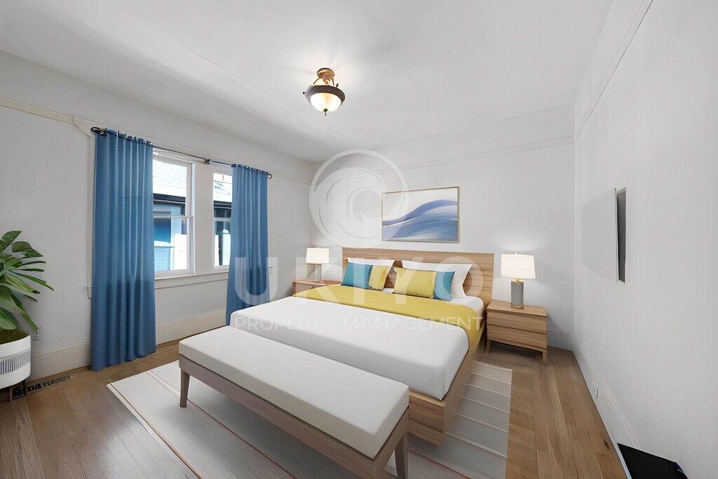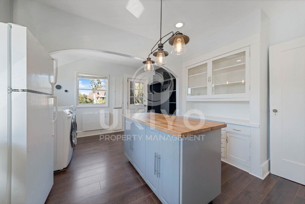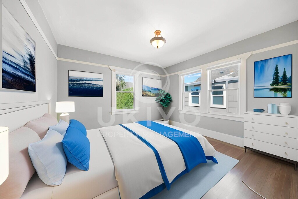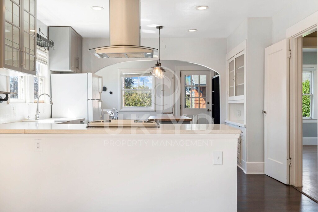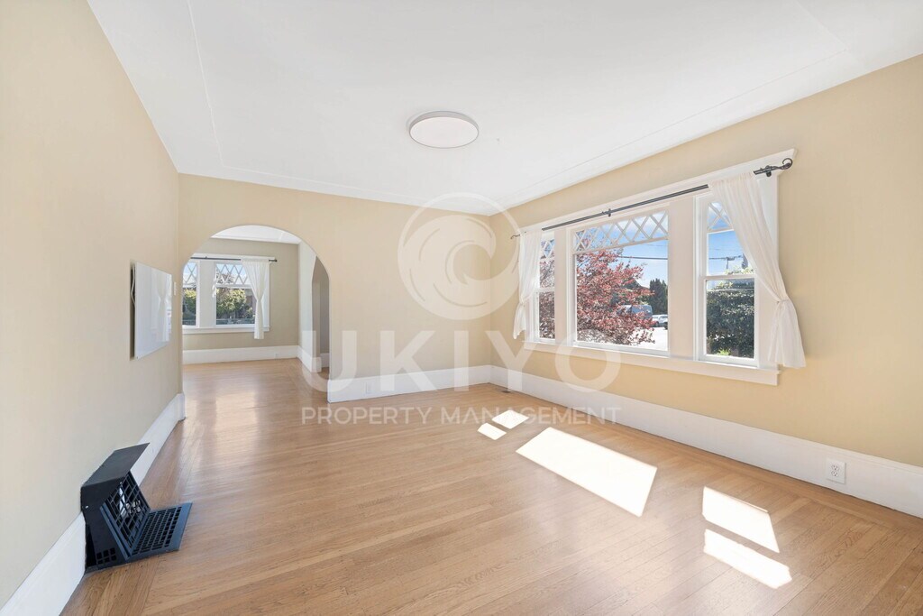 Discover this captivating 4-bedroom, 2-bathroom 1918 Craftsman-style bungalow, spanning 2310 sq ft and exuding a bright and sunny interior. The home is adorned with charming architectural details and boasts beautiful hardwood floors, preserving its original, quaint charm. Situated in an up-and-coming neighborhood, this residence offers both character and convenience. Within a 5-minute drive, you'll find easy access to several highways, a variety of restaurants, and the BART station. Additionally, the home is only a 10-minute drive to the Bay Bridge, natural grocery stores, and the popular Bay Street shopping and entertainment complex. Nestled on a dead-end street, the property offers a friendly and neighborly ambiance, making it a tranquil retreat in a prime NOBE (North Oakland, Berkeley, Emeryville) location. The fenced front yard and in-unit washer and dryer add to the comfort and practicality of this charming bungalow. Don't miss the opportunity to call this delightful space your home!