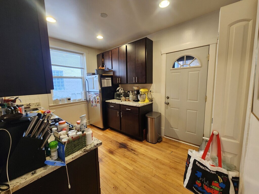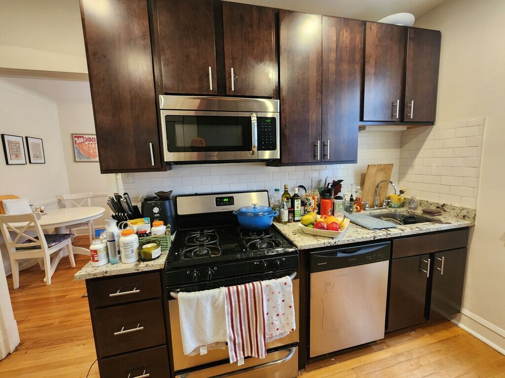 Welcome to 5201 Bernard #3, a top floor 2bed/1bath with updated kitchen and bathroom! This spacious apartment features hardwood floors, stainless steel appliances, and vintage touches that will have you living in both comfort and style. Located near the corner of Bernard and Foster, this building has easy access to CTA busses and the Kimball Brown Line stop. It also features in building, coin-free laundry and an area to store bikes. Entering the apartment, you step into a generously sized landing with doors leading to the two bedrooms and the updated bathroom. The bedrooms are generously sized with closet space for easy storage. A short hall through a vintage arched portal takes you to the living room, a tall bright space just next to the updated kitchen. The kitchen features stainless steel appliances, dark cabinets, and a walk-in pantry. The door from the kitchen leads outside to a wooden deck, with stairs leading down to the laundry and storage areas of the building. No security deposit, $350 move-in fee per adult tenant Cats OK, sorry no dogs. $300 move-in fee per pet Registered ESA and Service Animals (including dogs) are welcome with no move-in fee