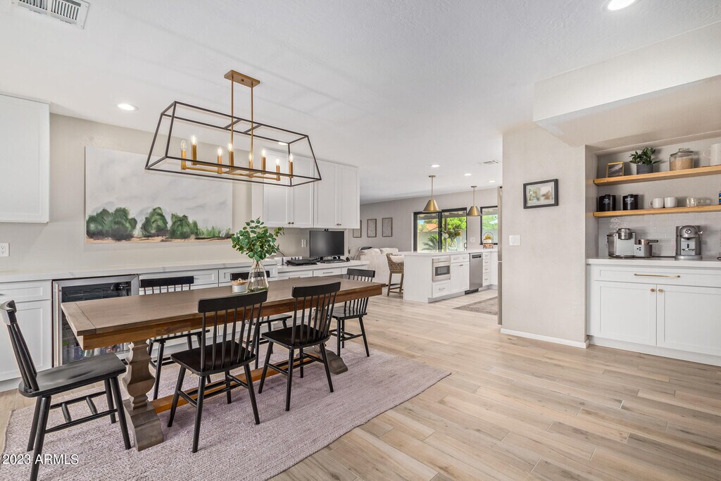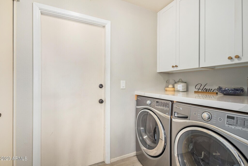 Stunning property-85254. Magnificent hm offers perfect blend of modern elegance/exceptional craftsmanship. Inside,be captivated by remodeled kitchen,custom cabinets/handmade shelving. Sleek design/top-of-the-line appliances make it a true haven for culinary enthusiasts/entertainers alike. The beauty continues as you make your way to backyard oasis-you'll find a sparkling pool that beckons you to take a refreshing dip on hot days. Meticulously landscaped gardens create a serene/picturesque atmosphere,perfect for outdoor gatherings/quiet relaxation. Remodeled bathrooms boast exquisite finishes/attention to detail,offering spa-like experience. New windows flood rooms w/natural light,highlighting wood-like tile flooring-Quartz countertops add touch of luxury to every space. 50ft RV parkin