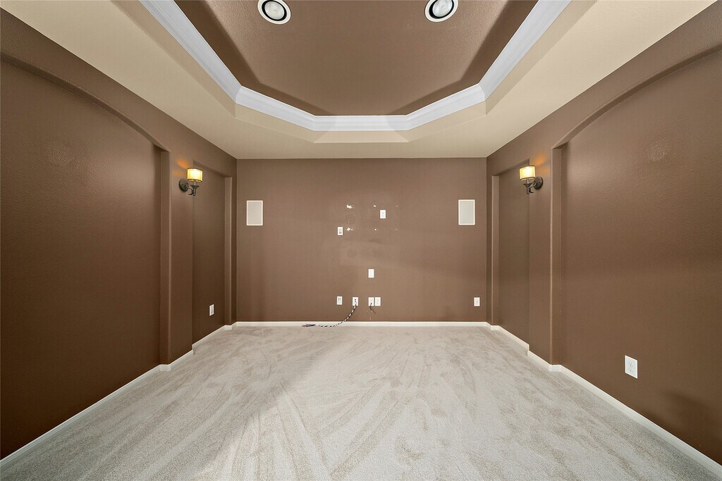 Live your life in comfort and style with this stunning home in the master-planned community of Riverstone. Passing through the beautiful stone façade & iron French entry doors,be greeted by a grand rotunda entry w/ hardwood flooring & a curved staircase with wrought iron spindles. Gather your family and friends around the fireplace in this 2-story great room with bay windows. Entertain guests in the dining room with a coffered ceiling,game room w/ a tray ceiling,or media room w/ theater lighting. Equipped with granite countertops,a tile backsplash,stainless steel Monogram gas cooktop,breakfast bar,& pendant lighting,the gourmet kitchen is the perfect place to showcase your culinary abilities. Escape to study with French doors & a coffered ceiling,or spend an evening melting away the stress in the spa-like master suite,complete with bay windows,a tray ceiling,a spacious walk-in closet,dual vanities,a jetted hot tub,and frameless shower. MLS# 868645