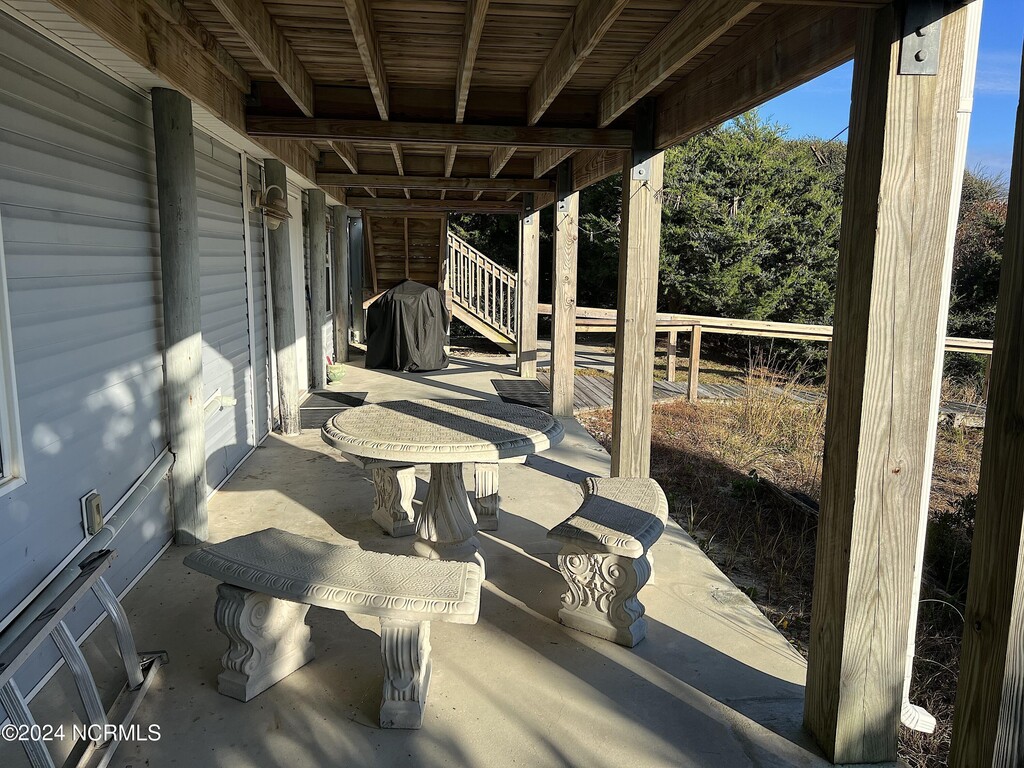 Wonderful house to spend the Autumn, Winter & early Spring in until the Owner's Use it for the Summer Rental Season. This home is a perfect place to have the Thanksgiving and Christmas Holidays in, 4 bedrooms upstairs and 3 bedrooms downstairs, 2 kitchens (1 full) (1 partial) 1 game room with lots of games, puzzles, etc and a ping pong table on the first floor. A wonderful covered porch on the 2nd floor with amazing views of the ocean and a covered porch on the lower level for grilling and relaxing. Walkway to the Ocean out of the back of the house and steps from Bogue Sound from the front of the house. Even if you have a small family there is plenty of room to spread out for your family, this home has that cozy feeling with lots of character. The yard is perfect for parking 3 - 4 cars with a quiet atmosphere. This is a must see home for spending 8-9 months of Ocean time and relaxing, reading and personal time.