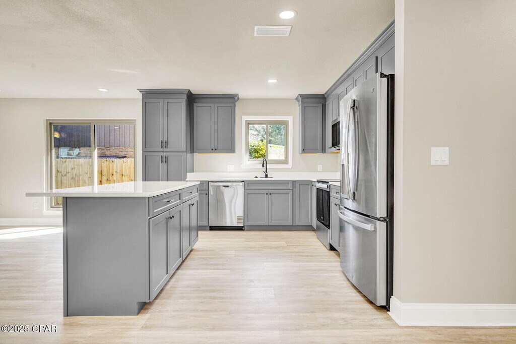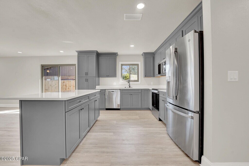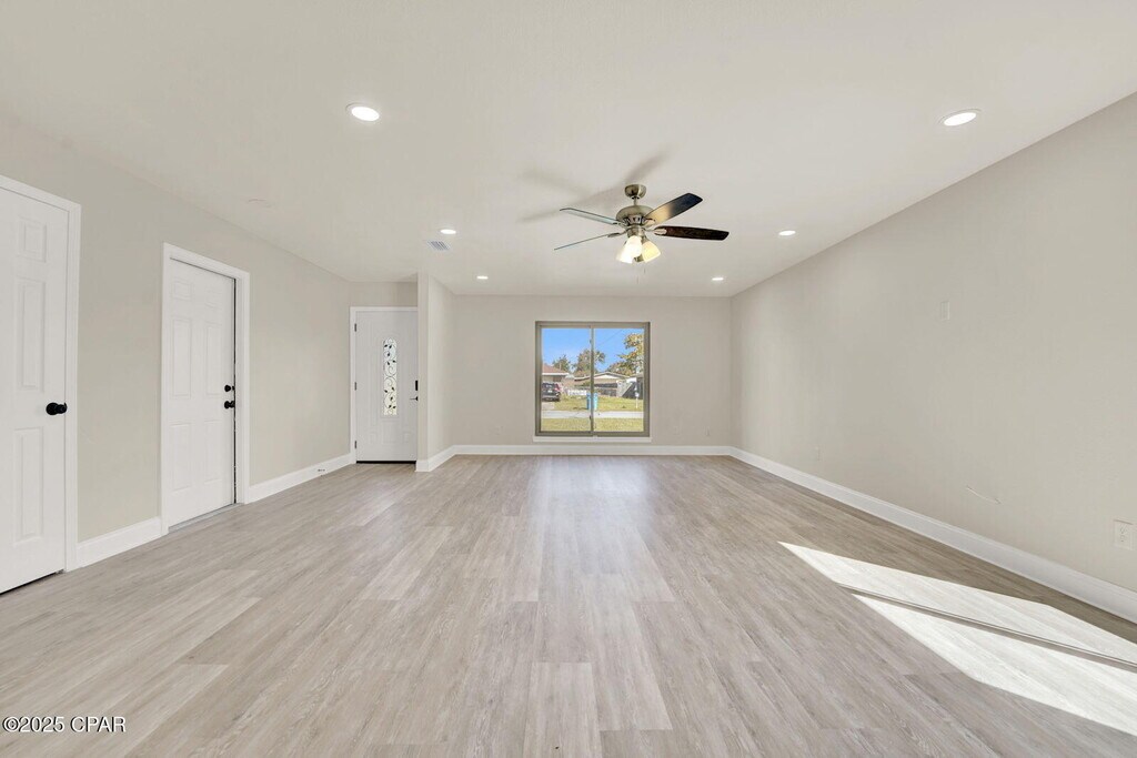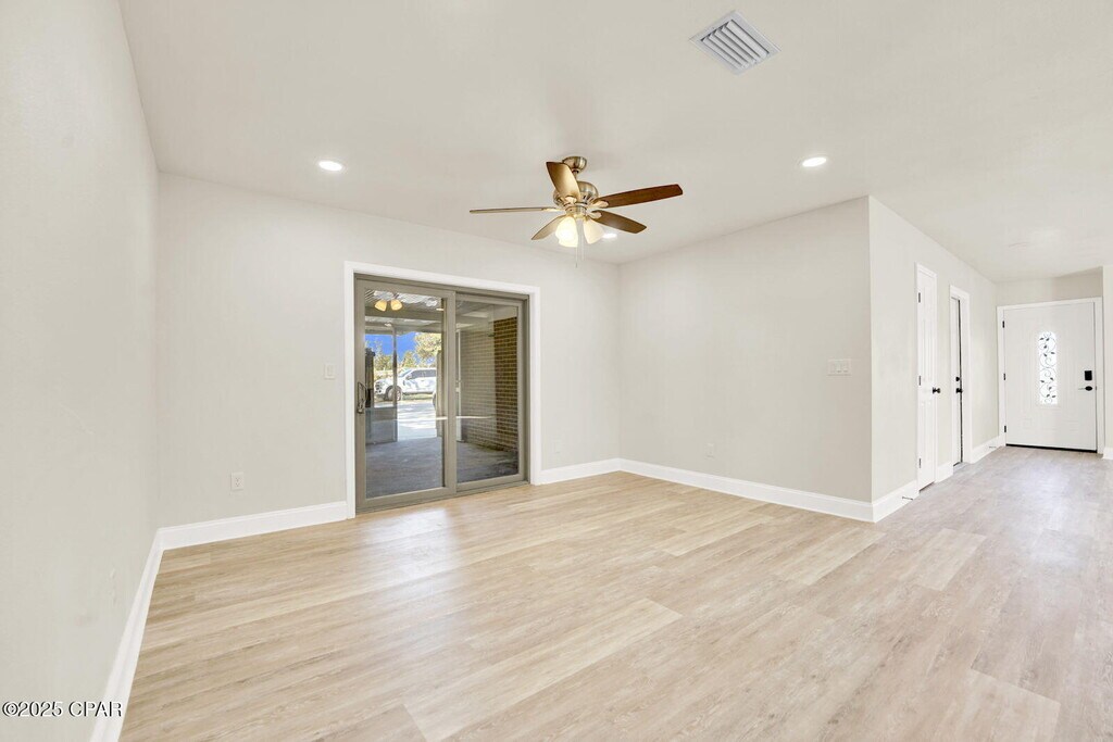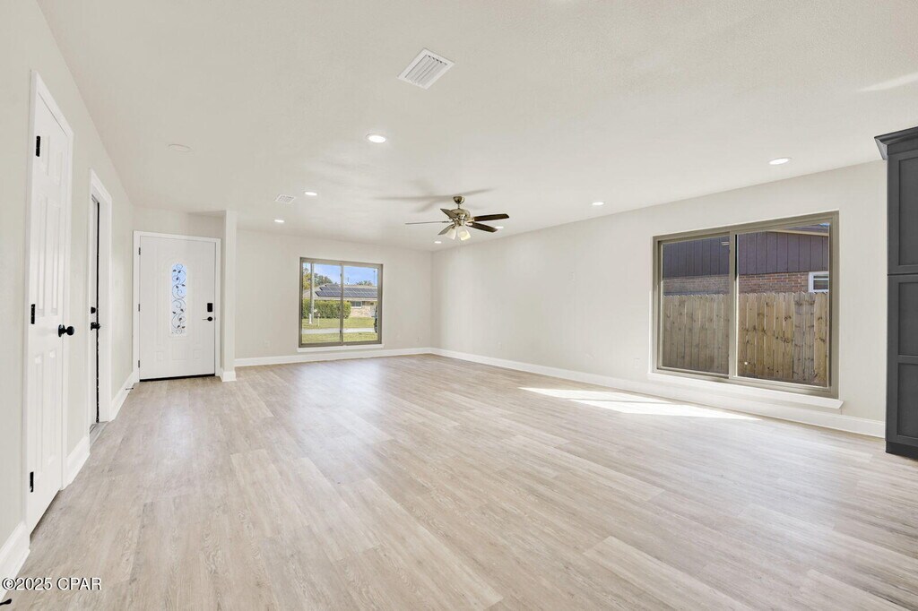 Welcome home to this charming red brick beauty on a spacious corner lot! This 3-bedroom, 2-bathroom home with a 2-car garage has been completely remodeled and is ready for its new family to move right in.Inside, you'll love the open floor plan with recessed lighting, vinyl plank flooring, and cozy new carpet in all the bedrooms. The kitchen is the heart of the home, featuring a large island that overlooks the bright and open living room -- perfect for family gatherings or game nights.The primary bedroom is tucked away for privacy and features a spacious closet and ensuite bath with a tub/shower combo. The second bathroom offers a double vanity and walk-in shower, giving everyone plenty of space.Step outside to enjoy your own backyard oasis! Relax on the screened-in patio, or take a dip in the in-ground pool. There is plenty of enjoyable greenspace for entertaining and playtime in the brand-new privacy fence yard. There's even a storage shed and double gate access to the backyard for convenience.This home also features Solar Panels, which are paid off, and will contribute to low electric bills month after month. With a new AC system, tankless water heater, and updates throughout, this home offers peace of mind and easy living. Pool maintenance is included in rent. Located just minutes from shopping, restaurants, and Tyndall Air Force Base, this home truly has it all -- comfort, style, and a great location.Home is also listed for sale MLS 780745
