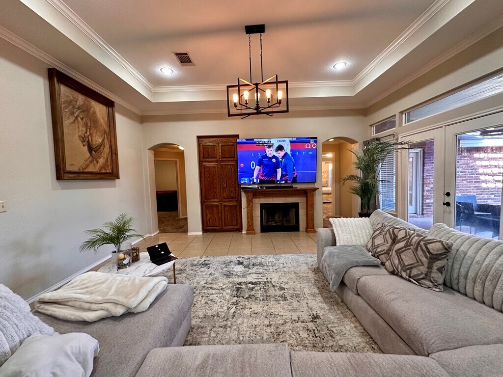 Resort-style living with a private pool and pergola! This spacious 4-bedroom, 2.5-bath home features 2,315 sqft, a cozy wood-burning fireplace, and a primary suite with direct backyard access. Enjoy low-maintenance artificial turf in front and back, a fenced yard, fire pit, and two-car garage. Refrigerator, range, dishwasher & microwave included. Pool maintenance included. Pets considered case-by-case. Near GreatHouse Elementary. $5300 Rent. $5300 Deposit. Pets-Case by Case.