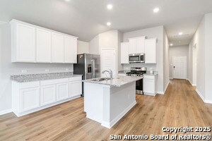 Welcome to 5206 Halite Valley, your new rental home in the vibrant community of Blue Ridge Ranch! This beautifully designed 3-bedroom, 2-bathroom single-story home offers 1,687 sq. ft. of modern living space with an open-concept layout perfect for both everyday comfort and entertaining. Step inside to a bright and airy interior featuring a spacious living and dining area that flows seamlessly into the chef-inspired kitchen with sleek countertops, stainless steel appliances, and plenty of storage. The primary suite is a relaxing retreat with a well-appointed bathroom and walk-in closet, while the additional bedrooms and study/office provide versatile options for work or relaxation. Enjoy lower utility costs with solar panels, designed to significantly reduce your monthly electric bill-a huge benefit in the Texas heat. The backyard is complete with a covered patio, ideal for sipping morning coffee or hosting weekend barbecues. Located in a sought-after community, this home offers quick access to major highways, top-rated schools, shopping, dining, and outdoor recreation. Whether you're heading downtown for a night out or enjoying one of San Antonio's many nearby parks, you'll love the convenience of this location. Additional features renters will love: Attached 2-car garage Energy-efficient design Low-maintenance yard Pet-friendly options available (inquire for details) Don't miss the chance to call this modern and energy-smart home yours-schedule a tour today!