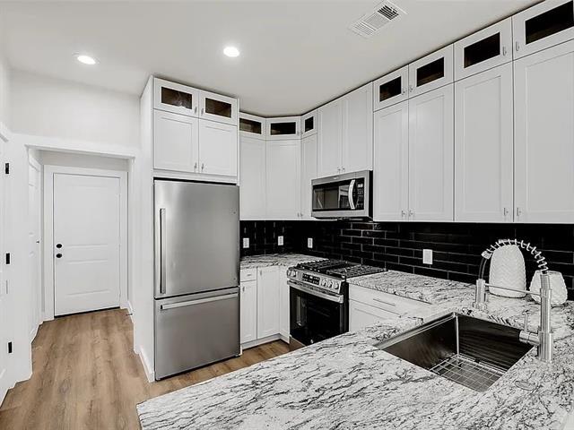 Modern, fresh, 2024 built half duplex available for lease in the excellent location of Fort Worth's River District. The proximity to the hospital district and the dining, shopping and nightlife that downtown Fort Worth have to offer make this an ideal place to call home. The first level features an open living, dining and kitchen area with two car garage entry access. Granite countertops, stainless appliances, gas range, plank flooring, half bath, washer and dryer closet and pantry. The second level features two bedrooms with ample closet space a shared bath and a primary bedroom with en-suite bathroom. Great private fenced yard space. Pets allowed. 12 month lease or longer available. Available after May 31st. Castleberry ISD. .