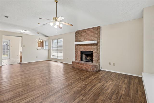 Spacious 3 bedroom, 2 bath single-story home in Leeds Addition, Arlington. This home features approx. 1,441 sq ft of living space with a large vaulted-ceiling living room, brick fireplace, and beautifully remodeled interior. Upgrades include new wood flooring and carpet, fresh paint throughout, and updated countertops. The bedrooms are generous in size. Outside, the yard is nicely landscaped—close to everything for convenience. Ideal location for comfort and style.