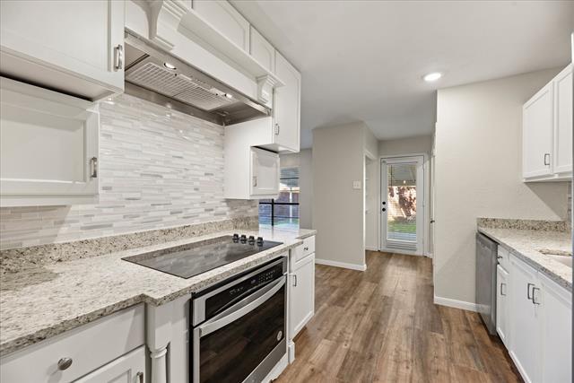This beautifully remodeled 3-bedroom, 2-bathroom home is now available for rent in a quiet, family-friendly neighborhood, offering the perfect blend of comfort and convenience. With fresh updates throughout, this home is move-in ready and boasts a brand-new roof, water heater, and HVAC system for peace of mind. Step inside to discover an inviting living space with new flooring and freshly painted walls that enhance the home's bright and open feel. The kitchen has been fully updated with gorgeous granite countertops, offering both style and functionality, while the remodeled hallway bathroom adds a modern touch. The spacious layout is perfect for entertaining or simply relaxing with family. Located just off Hwy 121, you’ll enjoy quick and easy access to major highways, making commuting a breeze. You’re also just minutes away from Grandscape, one of North Texas’ premier entertainment and shopping destinations, featuring dining, retail, and family-friendly activities. The home is also close to parks, schools, and grocery stores, making it the perfect location for your everyday needs. In addition to the great interior, this home also features a private, fenced-in backyard, providing a safe space for pets or a peaceful area to unwind. This home offers the ideal combination of location, convenience, and modern updates, all in a charming, well-maintained property. Don’t miss your chance to rent this amazing home—schedule a tour today! Tenant is responsible for landscape maintenance.