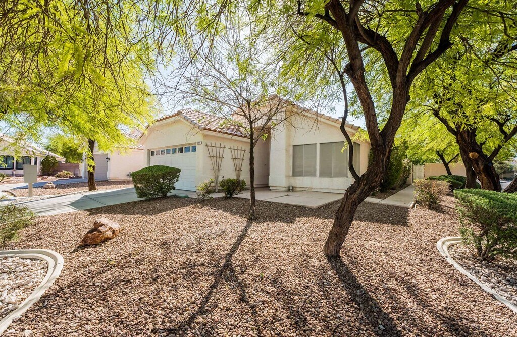Introducing the stunning 3 Bedroom home boasting exceptional features & a 2 car garage! Upon entering the property, you'll be greeted by a large living area. The living area is perfect for hosting guests or relaxing with family, with plenty of natural light and ample space. The kitchen is equipped with all appliances, granite counters, island, pantry and plenty of storage space. Master suite is a peaceful retreat, complete with a large bedroom and spacious walk-in closet. Along with a backyard with lush landscaping and a covered patio, perfect to enjoy the Vegas weather! CHECK FOR APPLICATION STATUS: Allow one of our BCRG Rental Specialists to assist you in finding your next home for FREE! Black and Cherry Real Estate Group