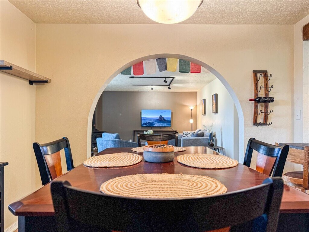 Experience comfort, privacy, and Santa Fe charm in this fully furnished 2-bedroom, 2-bath single-level home located in the sought-after Casa Alegre neighborhood. Thoughtfully designed for extended stays, this residence blends practical amenities with cozy style ideal for a peaceful and productive stay. Key Features: Fully Furnished Layout: A full-size home setup with stylish decor, smart organization, and everything you need to settle in for a month or longer. Private Gated Yard: Enjoy the seclusion of a fully fenced yard with a private patio ideal for morning coffee or evening wind-downs. Relaxing Hot Tub: Unwind under the stars with your own personal spa-like hot tub, perfect for all seasons. Full-Size Appliances: A complete kitchen setup includes a full-size range, fridge, dishwasher, microwave, and garbage disposal. Remote-Work Friendly: Multiple seating zones with high-speed WiFi, perfect for balancing work and rest. Washer & Dryer In-Unit: On-site laundry means added ease for longer stays. Prime Location: Situated just minutes from Frenchy's Field Park, the Santa Fe Plaza, hospitals, and major routes to Los Alamos, this home provides quick access to Santa Fe's best without sacrificing the quiet, local feel of a Stamm-built neighborhood. Explore nearby walking trails, grocery stores, and dining spots all while enjoying the warmth and comfort of your private retreat.
