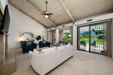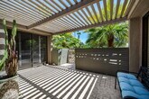 LEASED FOR THE 2026 SEASON. Lakefront 3 bedroom/3 bathroom condo at Mission Hills CC. Updated throughout - freshly painted,new stylish furnishings and golf cart! The covered and tiled patio is ideal for indoor/outdoor living,with BBQ and a fire feature,and expansive lake,mountain and fairway views of the Tournament Course. Light & bright,the open floor plan includes living room,dining area and kitchen - all open out to the patio with those great views. Living room features a fireplace and vaulted ceiling with wood beams. The re-designed Kitchen features custom cabinets,glass & stainless bar counter with seating,upgraded stainless appliances,granite slab countertops and dining area. Primary Suite offers views and private access to the patio. Updated ensuite bathroom has double vanity copper sinks,spa-like shower and separate tub. Two guest rooms each have adjacent bathrooms and open to the private gated front courtyard. Individual laundry room and a detached 2-car + golf cart garage. One of the many community pools/spas is just off the private front courtyard. Mission Hills CC offers a variety of membership options available for tenant to purchase for the season.
