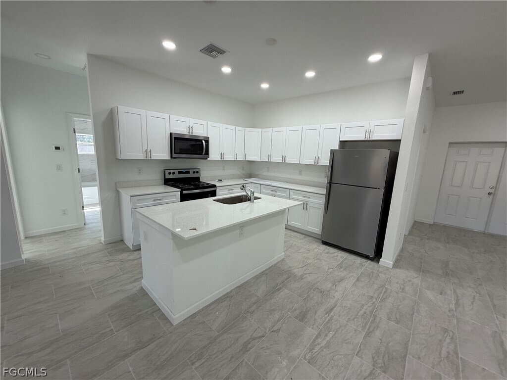 Available immediately for annual rent,this brand-new 2025 construction in Lehigh Acres offers modern living in a peaceful setting. Never lived in,the home features 3 bedrooms,2 bathrooms,and nearly 1,600 sq ft of thoughtfully designed living space. The open-concept layout showcases a spacious kitchen with a large island—ideal for cooking,gathering,and entertaining. Situated on a 10,000 sq ft lot,the property provides generous outdoor space while maintaining convenient access to local amenities. Additional highlights include Laundry room,Two-car attached garage,Bright,modern finishes throughout A perfect opportunity for anyone seeking a fresh,move-in-ready home in a growing community.